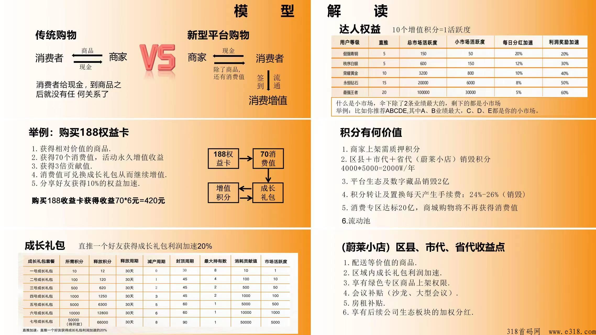 蔚来是一个平台联盟商家打造全新绿色积分消费新生态,对接线上线下实体进行引流、储客、赋能;同时满足消费者实现无痛消费,让消费者越消费越增值,深度参与平台流通板块,成为粘性用户。平台结合以创业者无忧轻资产创业为动能,推动全国线上线下业务扩张,打造全国品牌店,以绿色积分为纽带链接线上流量,线下消费方式进行品牌店赋能造血,从而打造新型商业逻辑新业态。