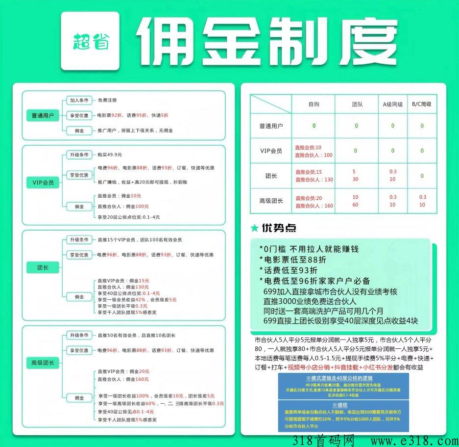 我们的优势和亮点可不止这些。首先,超省APP让你能够轻松省回本来的开销。撰享财富自由,不需要蓷广,只需看广告就能获得收宜,全网首创的公排滑落更是让你获得被动的大量**收宜。