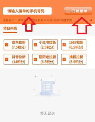 输入手机号,点击开始做单,手机收到验证码、填写验证码到对应的项目并点击上传,然后等待商家确认,佣金到账;步骤很简单,所以大大提高了推手的操作速度,时间上更自由,不想做了可以随时停止。