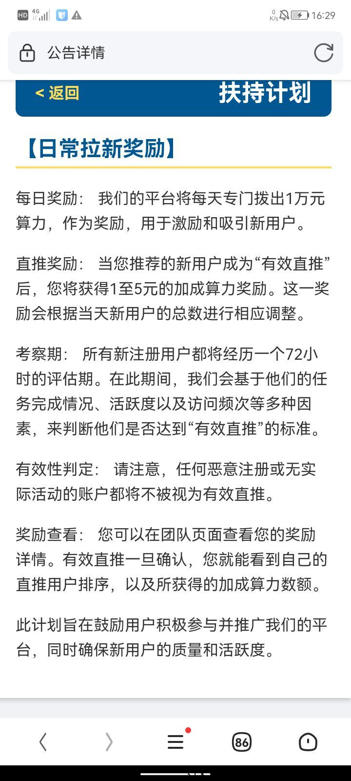 直推奖励: 参与者通过直接推荐其他人,每直推一人,奖励1算力。