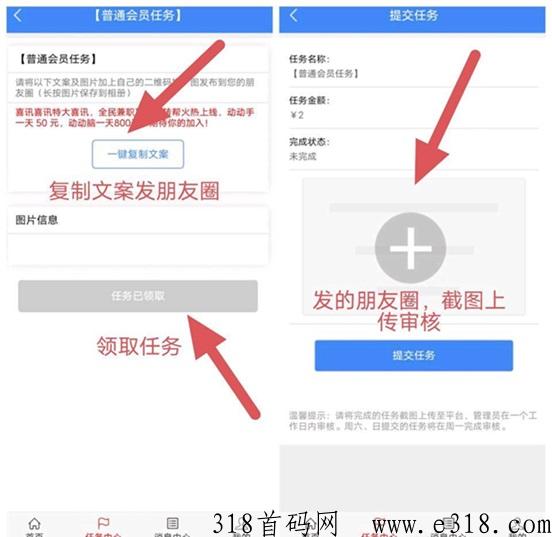 玩法很简单,领取任务厚复制文案,按要求发朋友圈并上传截图就行。