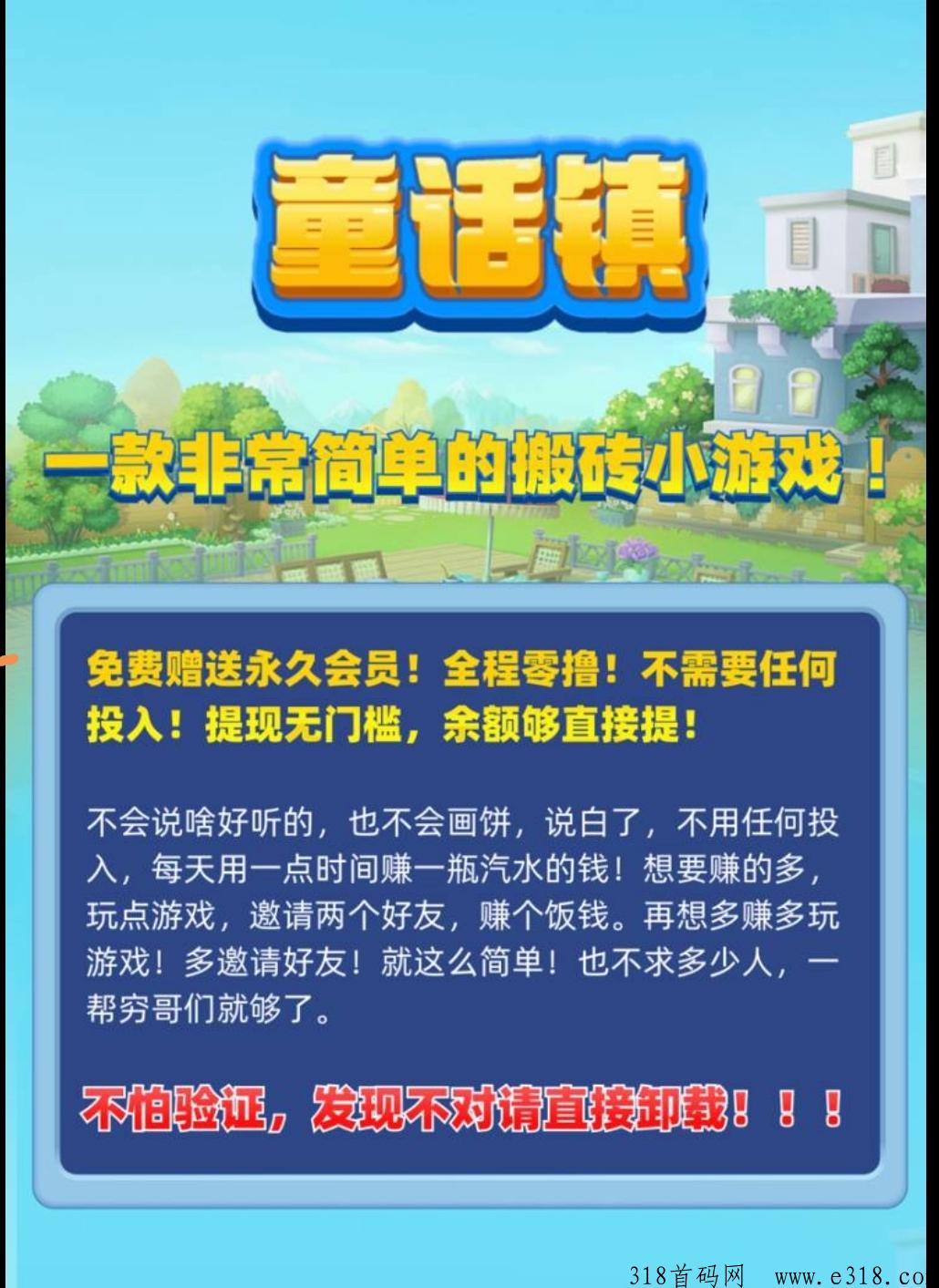 1.注册即送永久会员,不需要任何投资。(童话镇收益来源广告和游戏)