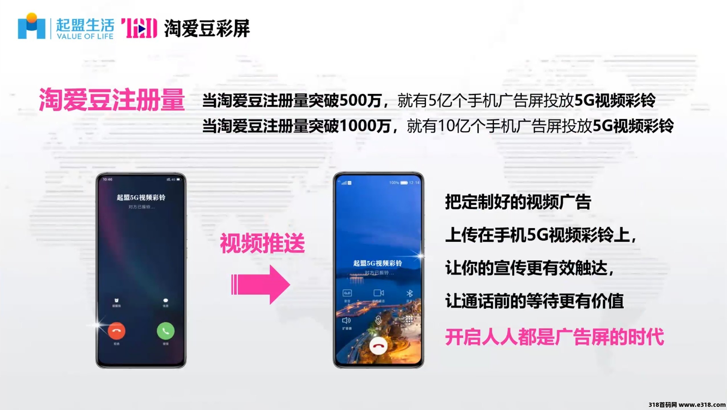 淘爱豆生活绝对是前所未有,空前绝后的数智化生态平台,通过5G视频彩铃广告业务打造千万流量平台!