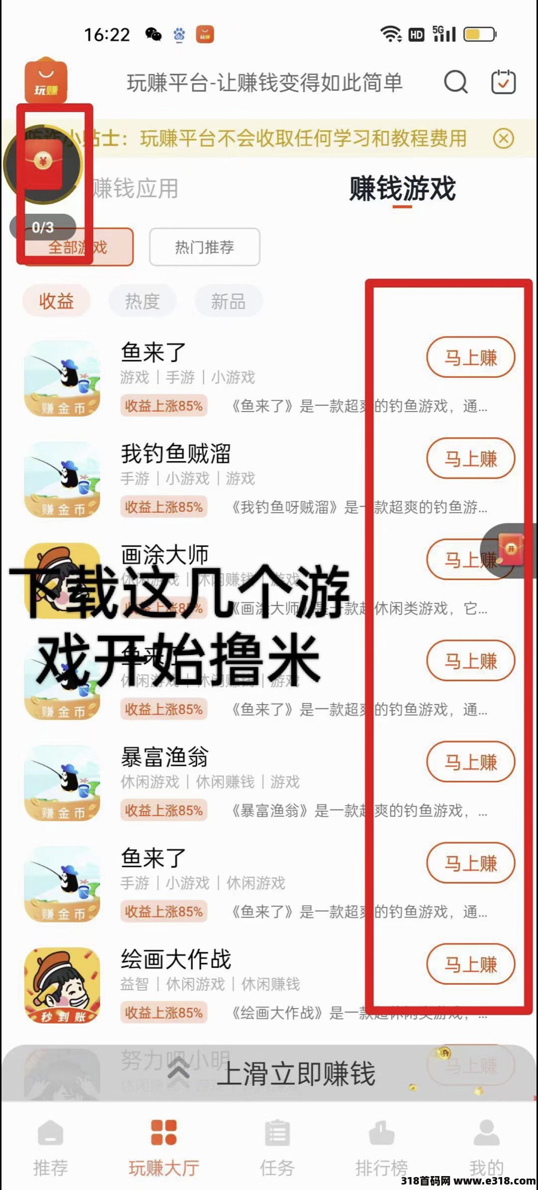 全程零撸,随时随地,想赚就赚,题现秒到!
