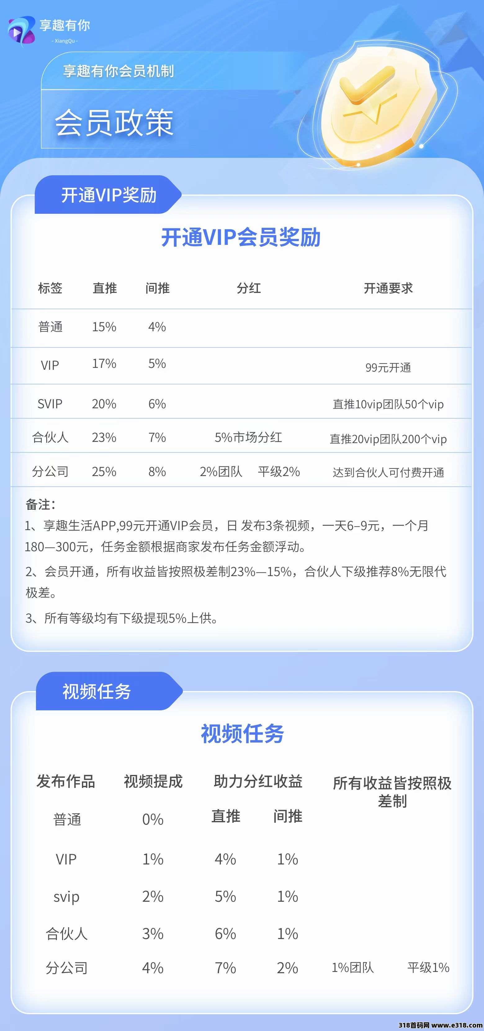 享趣生活,抖推模式, 开通会员能每天能发3个视频 保底6-9元