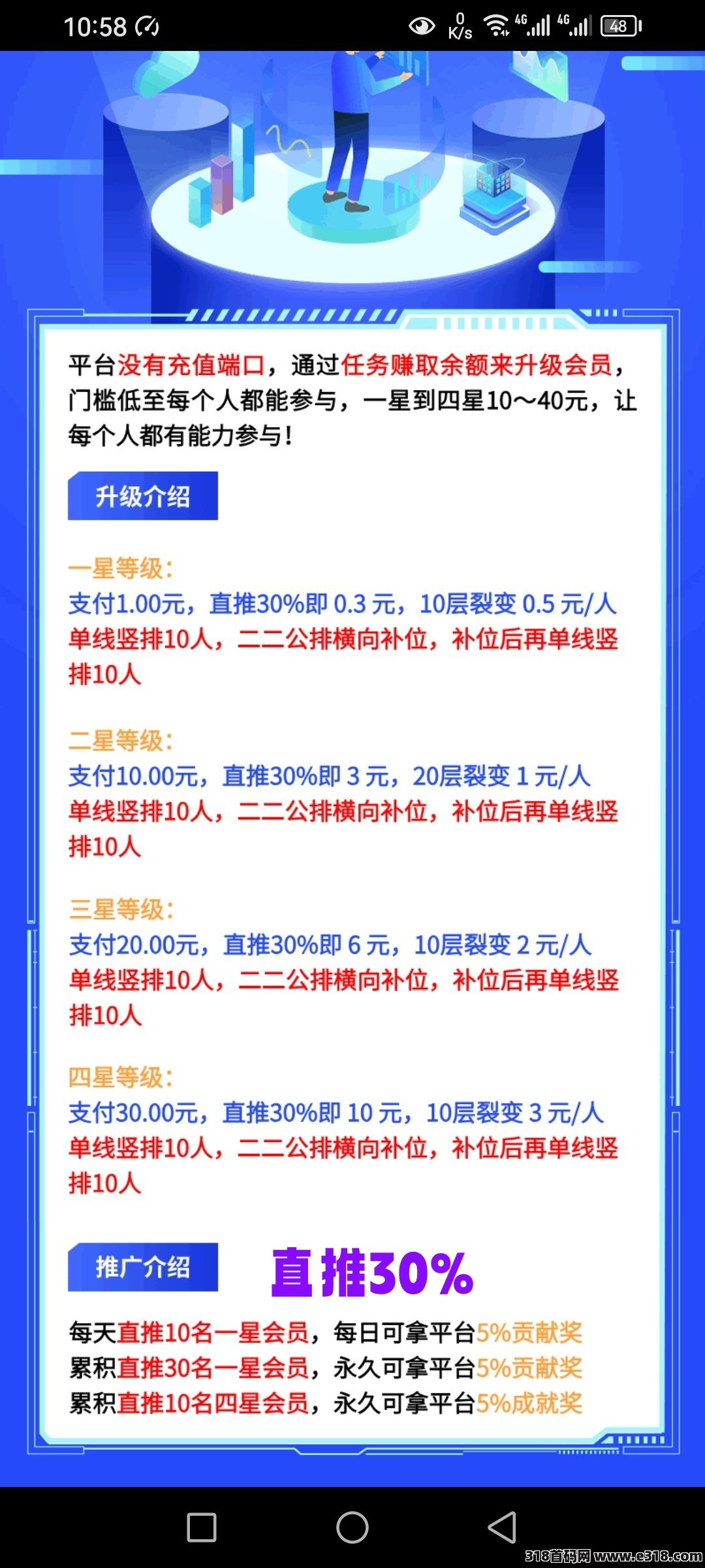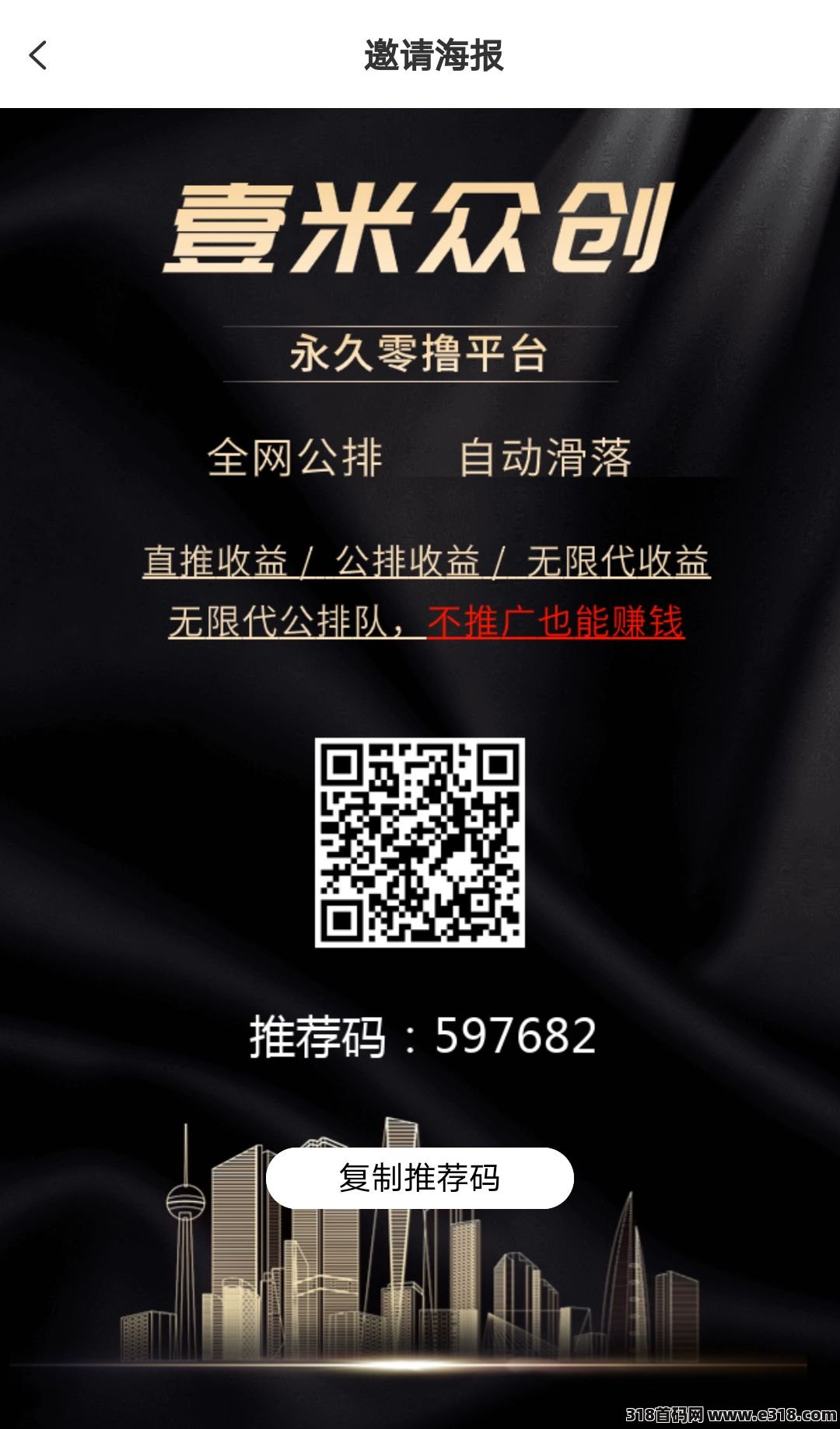 壹米众创,一款零撸项目,看广告自动落滑,多层收益,直推30%,更多收益请下载了解