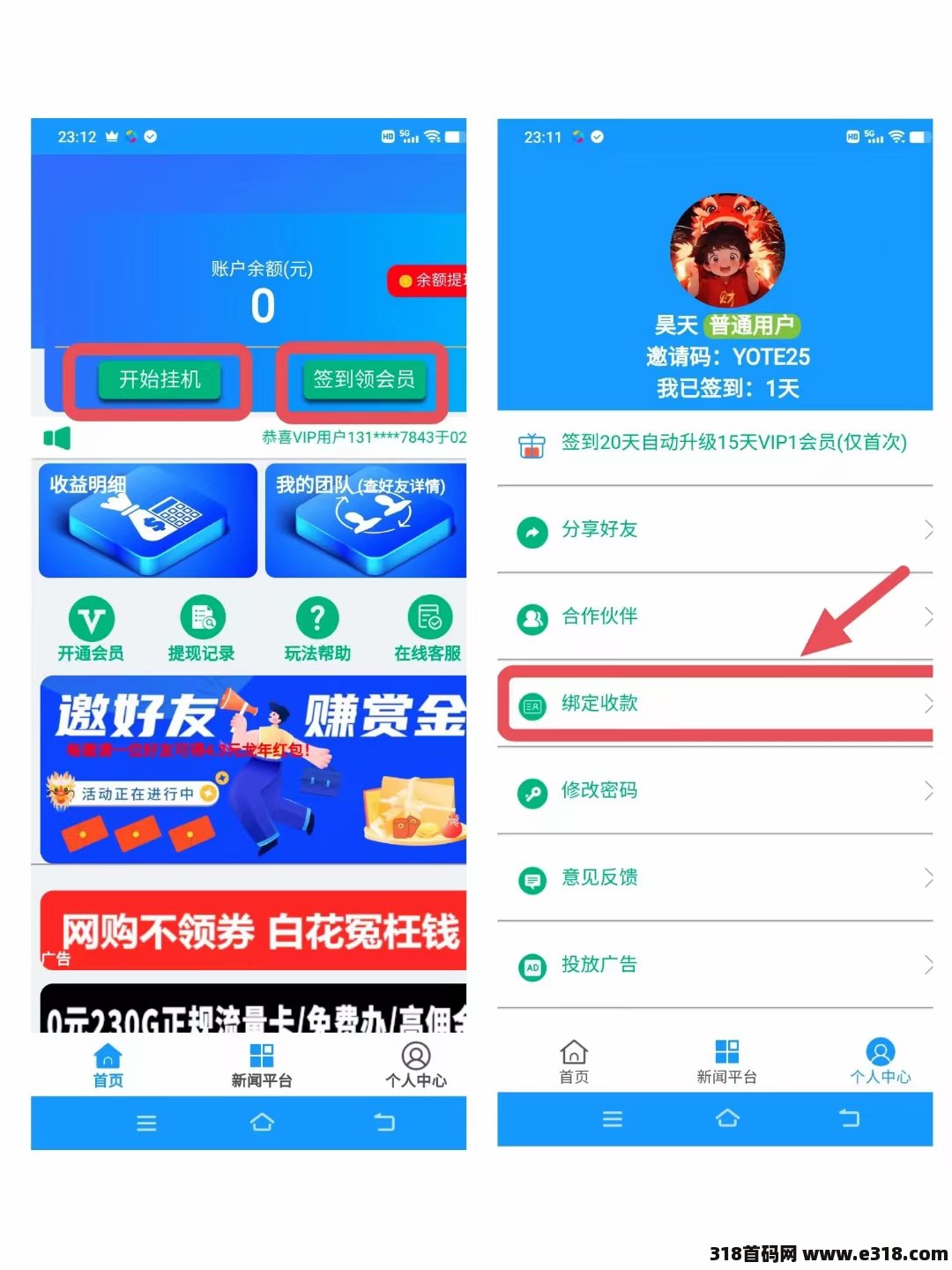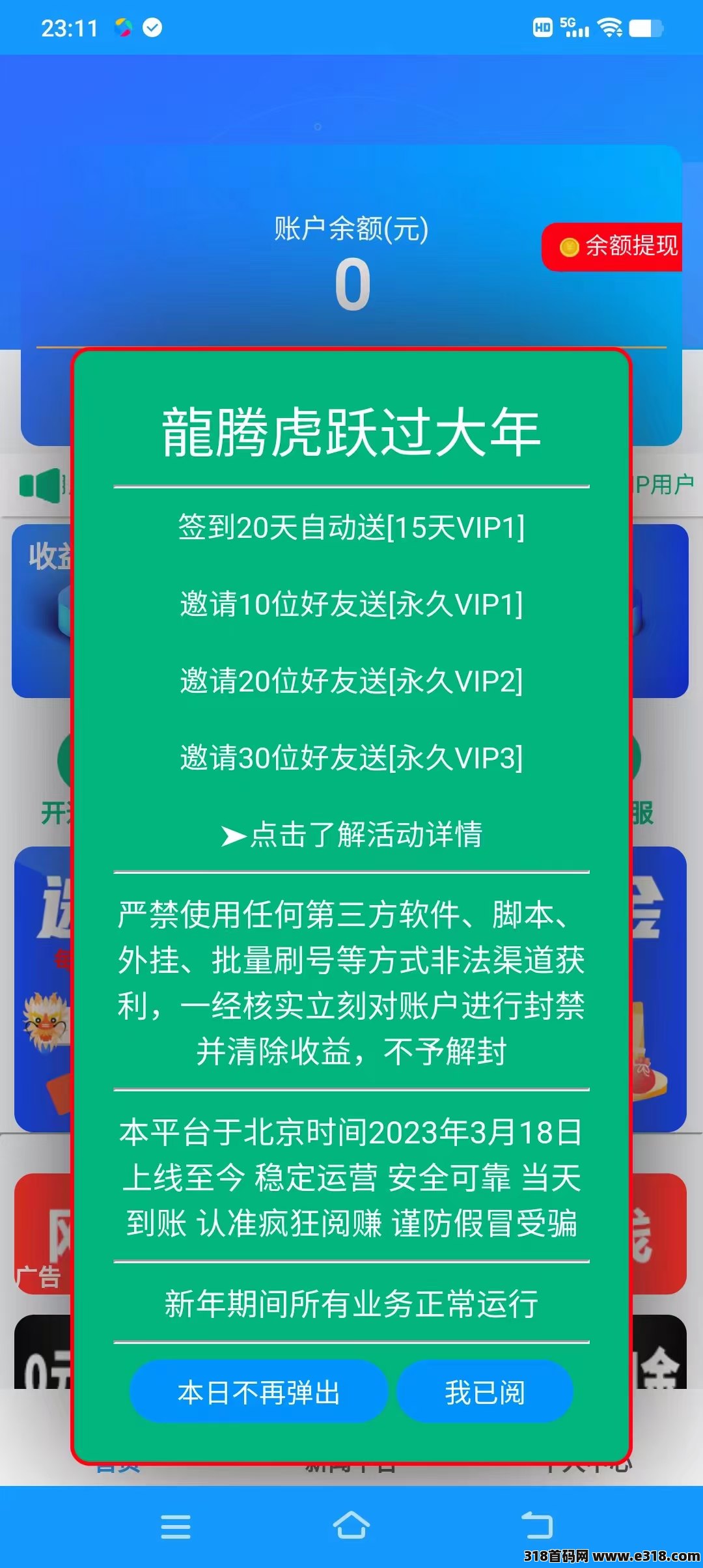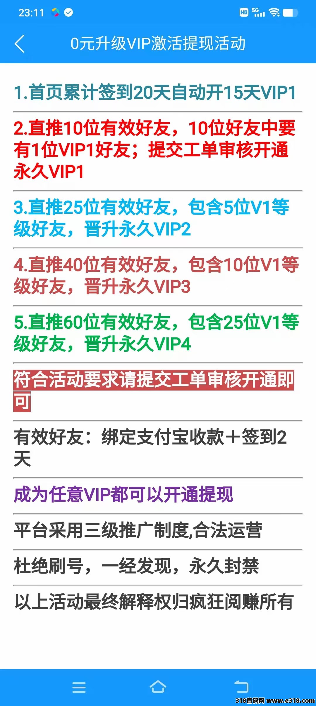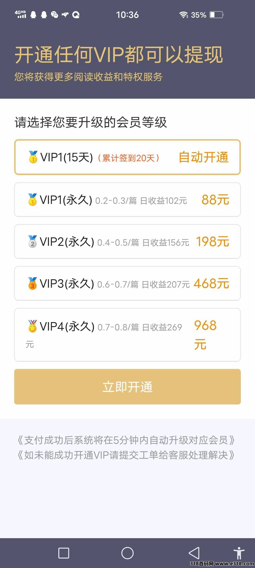 疯狂阅读,新出零撸褂机自动阅读文章,5秒一篇,一篇0.15左右,日赚68元,实名上传支付宝即可认证,连续签到20天自动送15天VIP1,日赚102,是会员即可提现,用提的钱再去升级VIP会员,有提现到账截图,抓紧时间过年吃肉肉!!