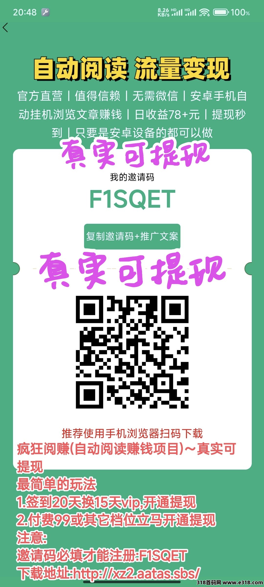 1.签到20天换15天vip,开通提现