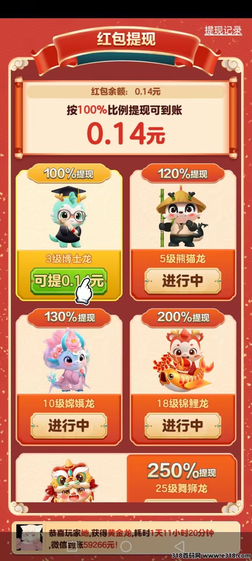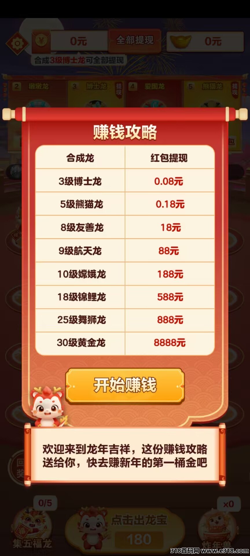 龙年吉祥,是零撸项目,通过简单的合成,看广告赚收益,提现秒到。