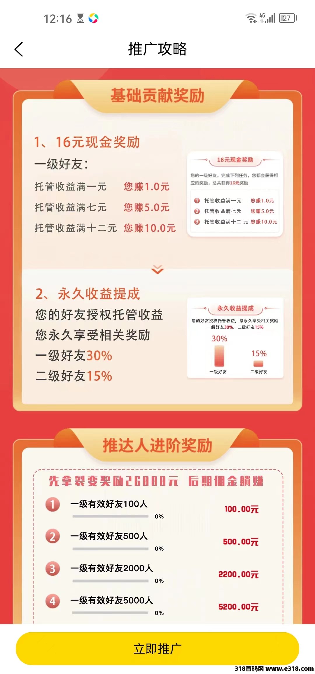 平台有四重收益奖励:1.授权收益:您在app授权后,平台会在24小时后在抖音号上发布关于头像.表情包等方面的作品,根据作品播放广告转化赚取收益,授权后无需作,每日领取收益即可,抖音账号可以正常使用没有影的。可以多抖音账号授权授权越多收益越多!2.收徒收益邀请好友进行授权,一级好友托管收益满1元奖1元,满5元奖5元,满10元奖10元。3.提成收益:你自己邀请的好友为一级好友,你的一级好友邀请的为二级好友,你的一级和二级好友进行授权收益,你都会享受他们托管收益对应的提成。一级好友30%,二级好友15%。4.团队奖励你的一级有效好友达到相应人数,平台给予现金奖励。5.关注平台更多活动