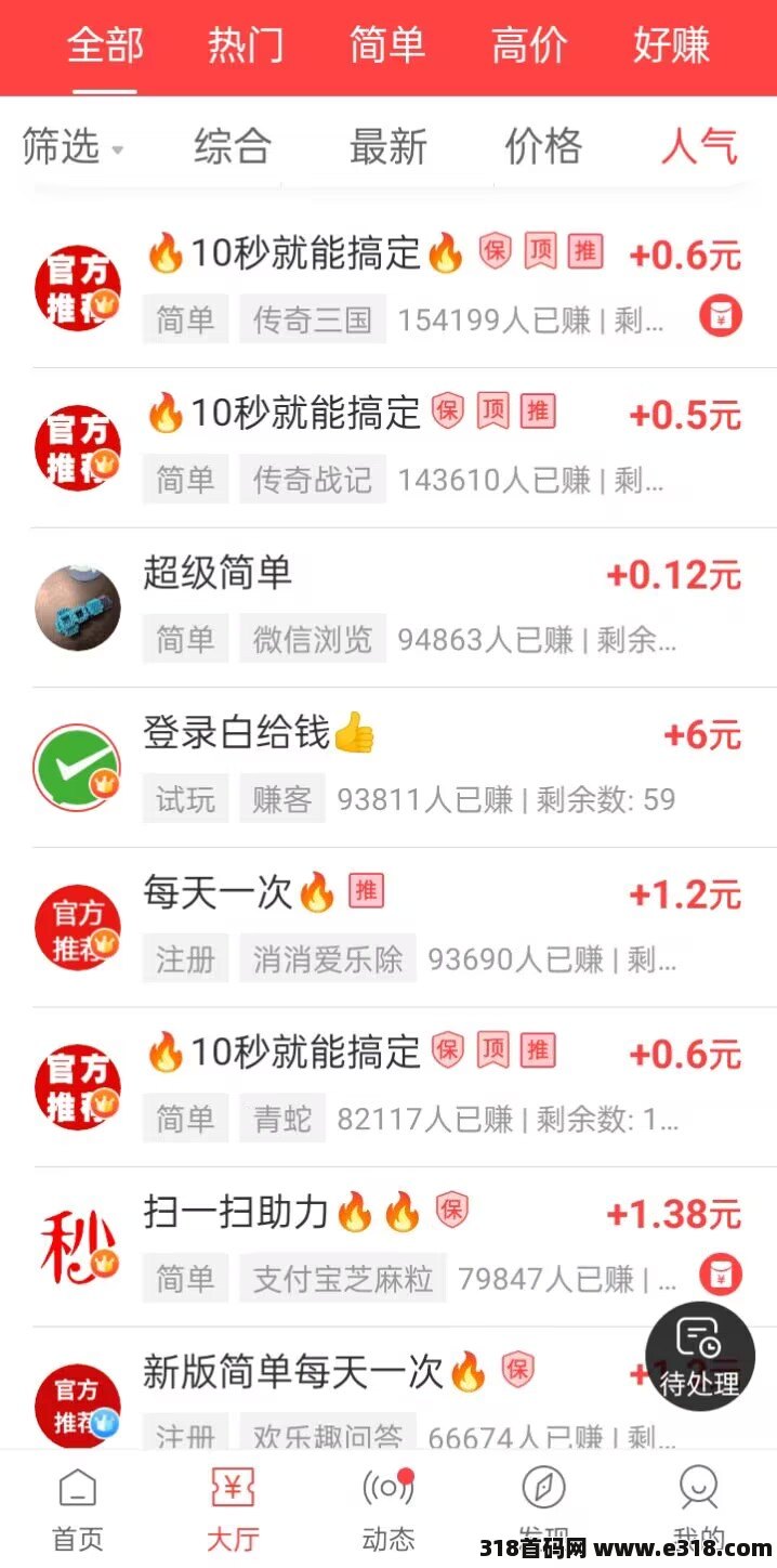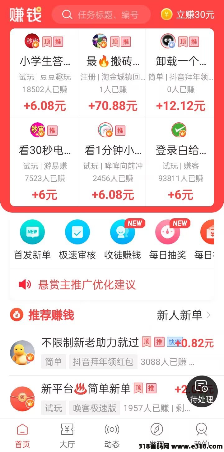 【赚钱了】悬赏任务平台!在这里,可以发起悬赏任务,推广任务,让成千上万的用户为您忙碌,帮助您解决各种问题。