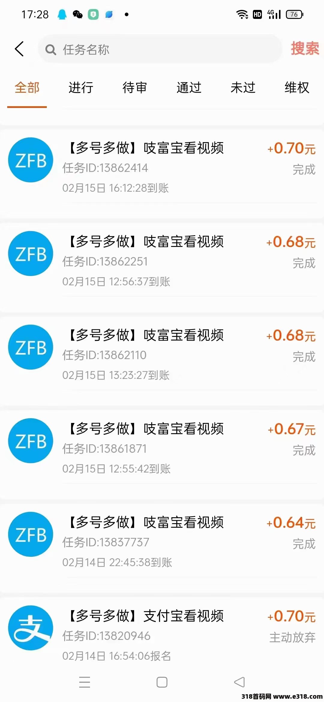 柚子快报,每天50+助力任务,致富宝视频助力撸羊毛,一个号每天能助力3次,一次几秒钟,一个号一天2块+,多支付宝号多做。还有很多助力任务,微信扫码