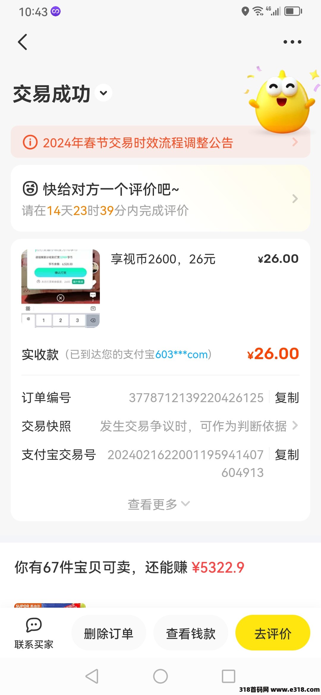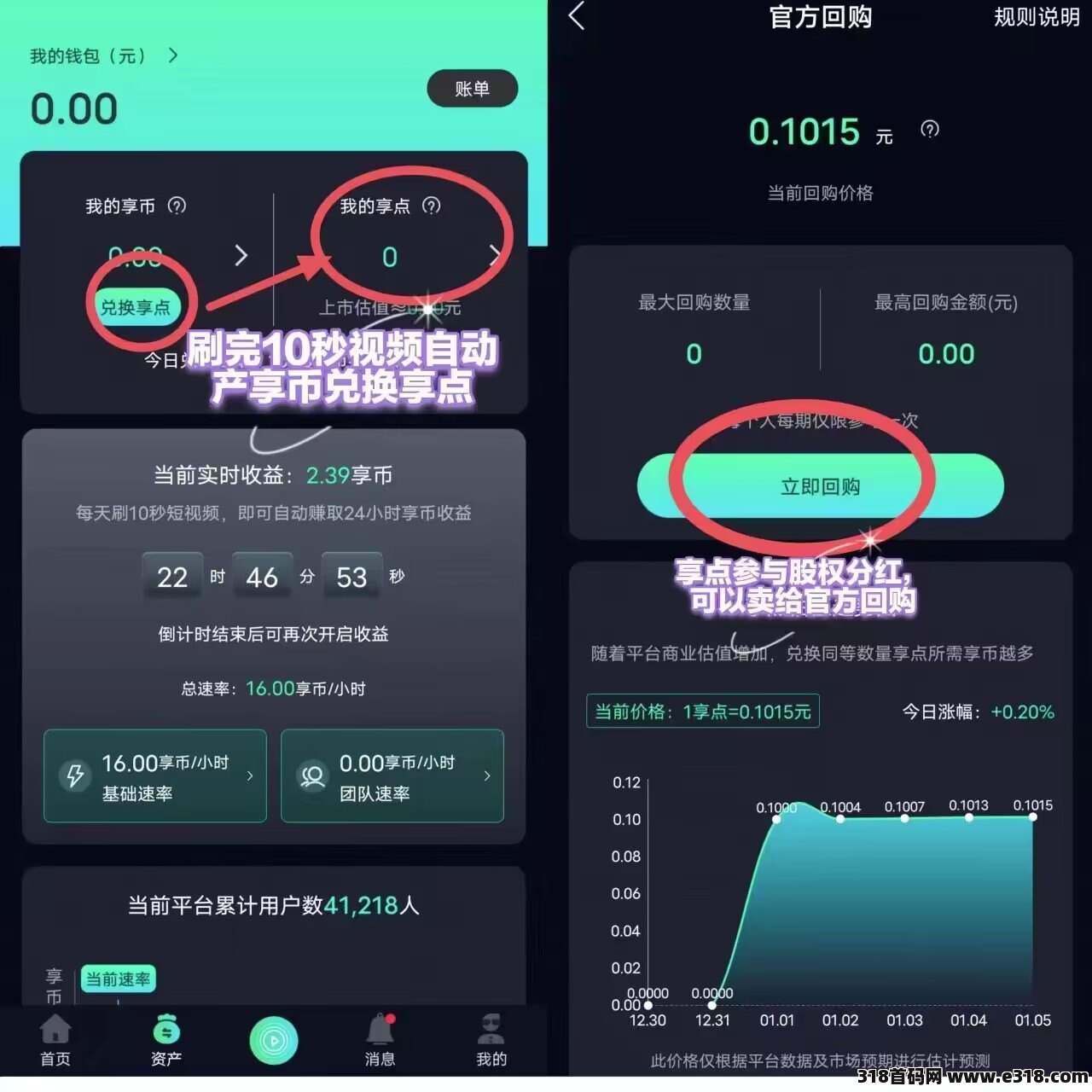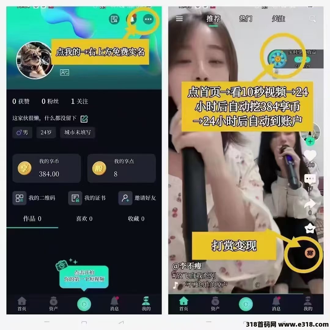 享视《每天10秒》免费零撸 外场回收,每天10秒小视频,得384个币,咸鱼1000币10快多,秒卖