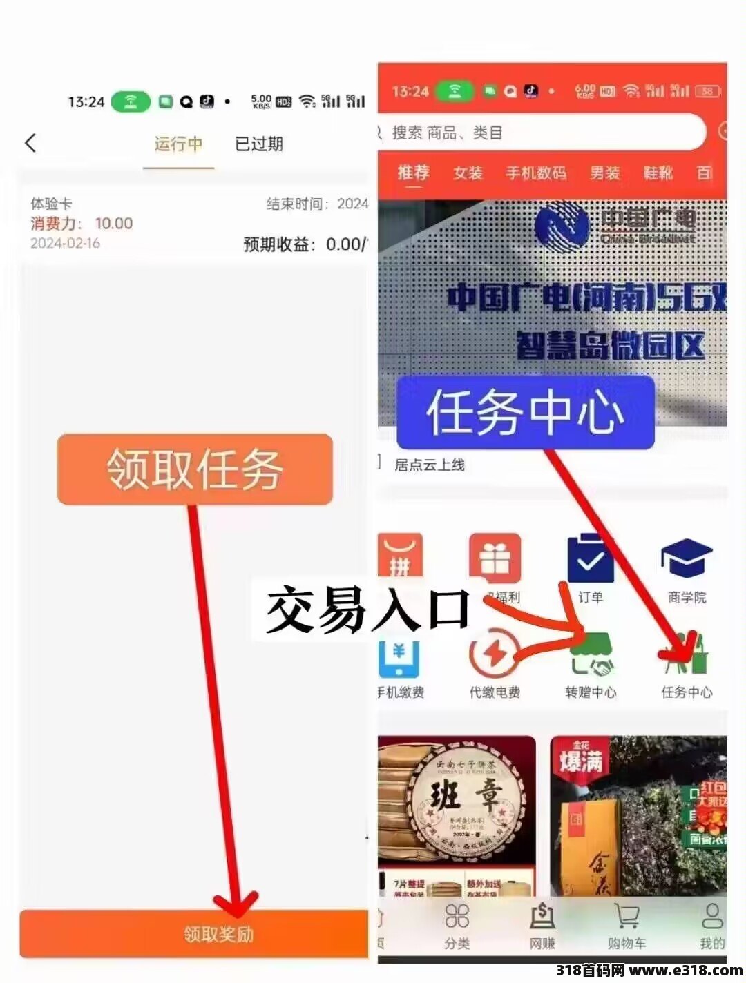 任务:首页~任务中心~我的消费卡~领取奖励 ~看5个广告~领取收益