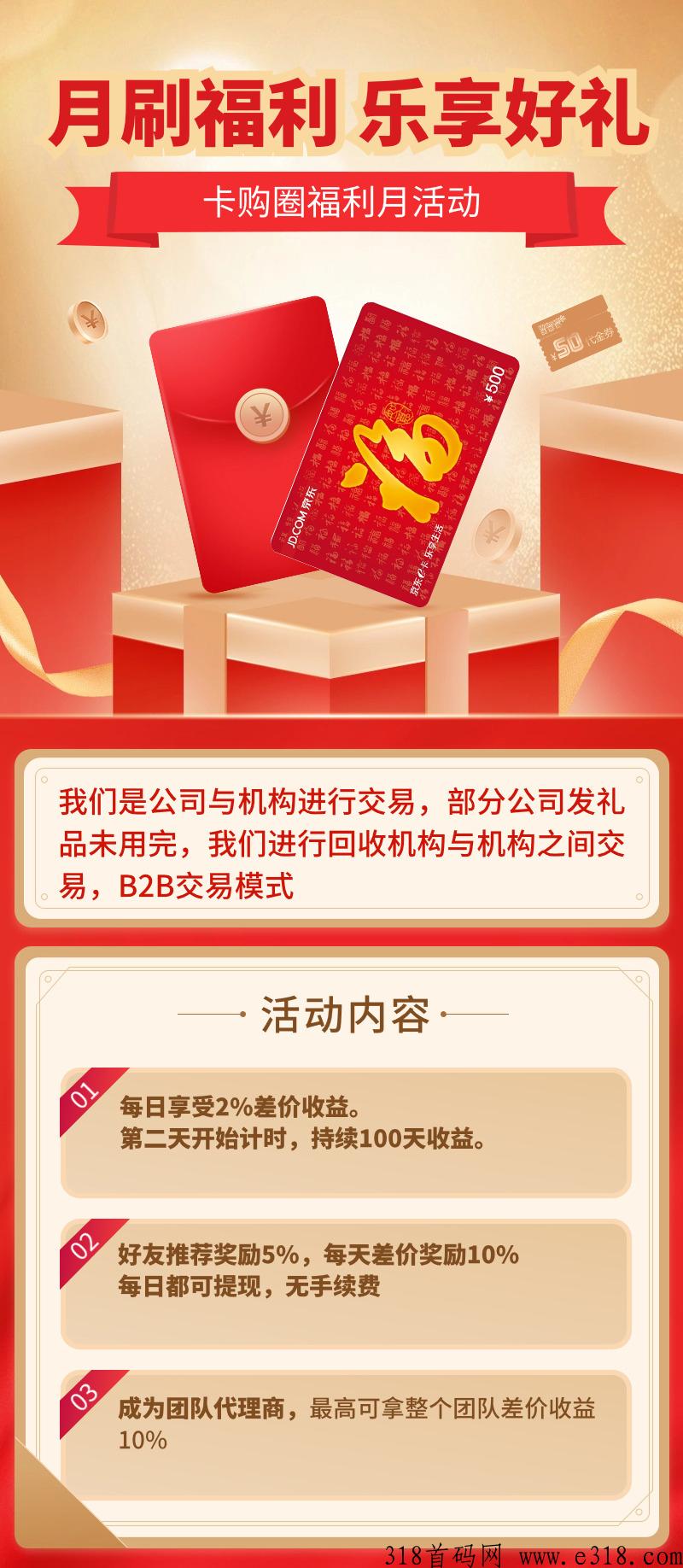 关于收益:每日2%差价收益(释:1.平台以低价获取卡券。2.高价卖出,获取差价,在分化。批量进货获得更低价格)