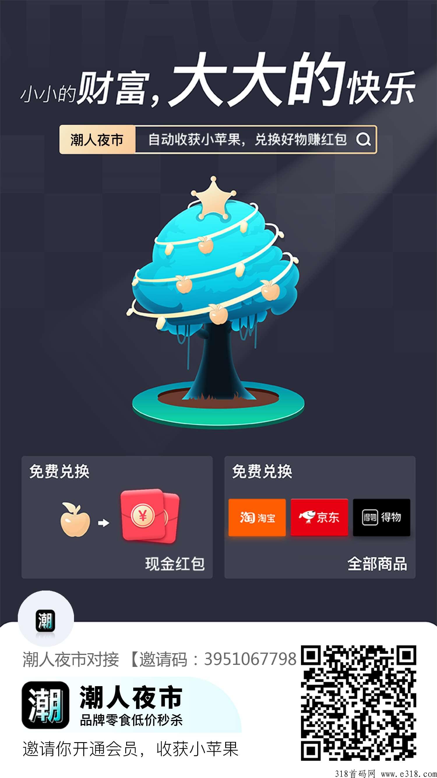 潮人夜市:购物商城+果树种植双模式,双收益,团队可层层受益!苹果可兑换商品