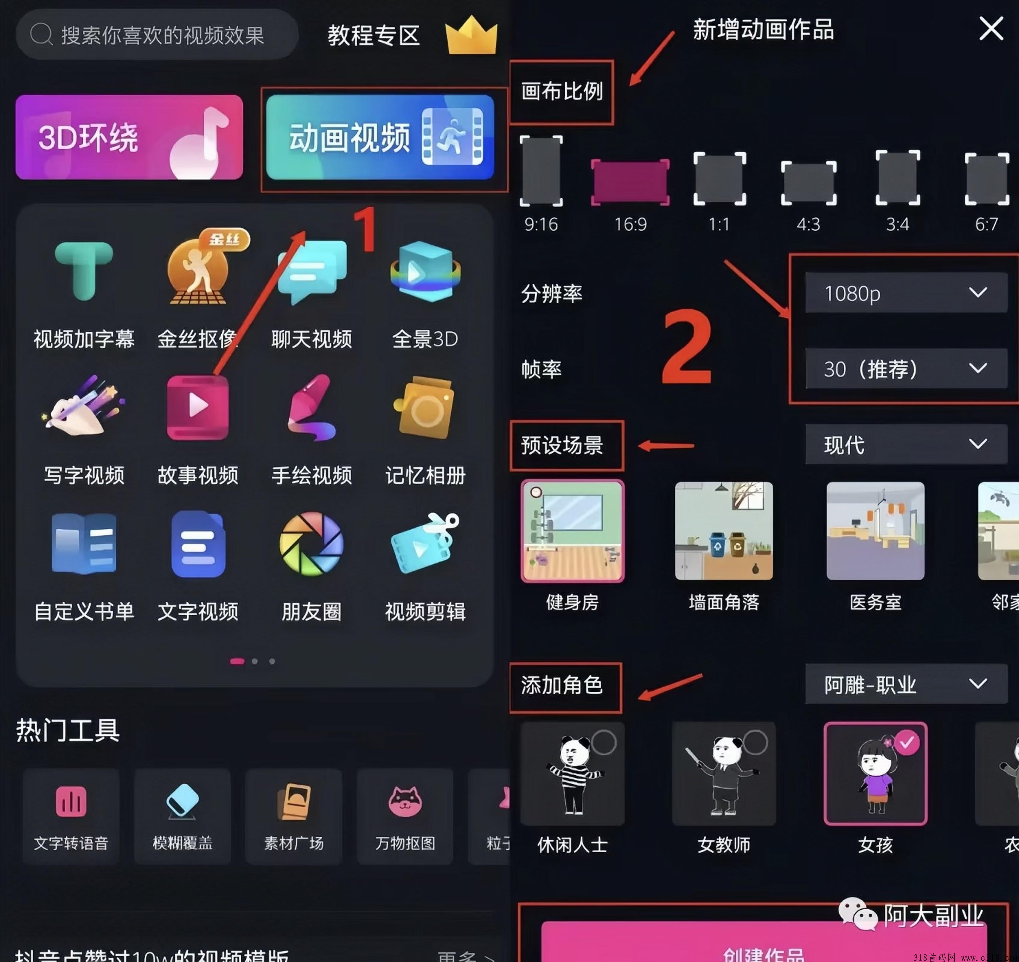 点击制作后,会看到一个动画视频的按钮,然后点击!