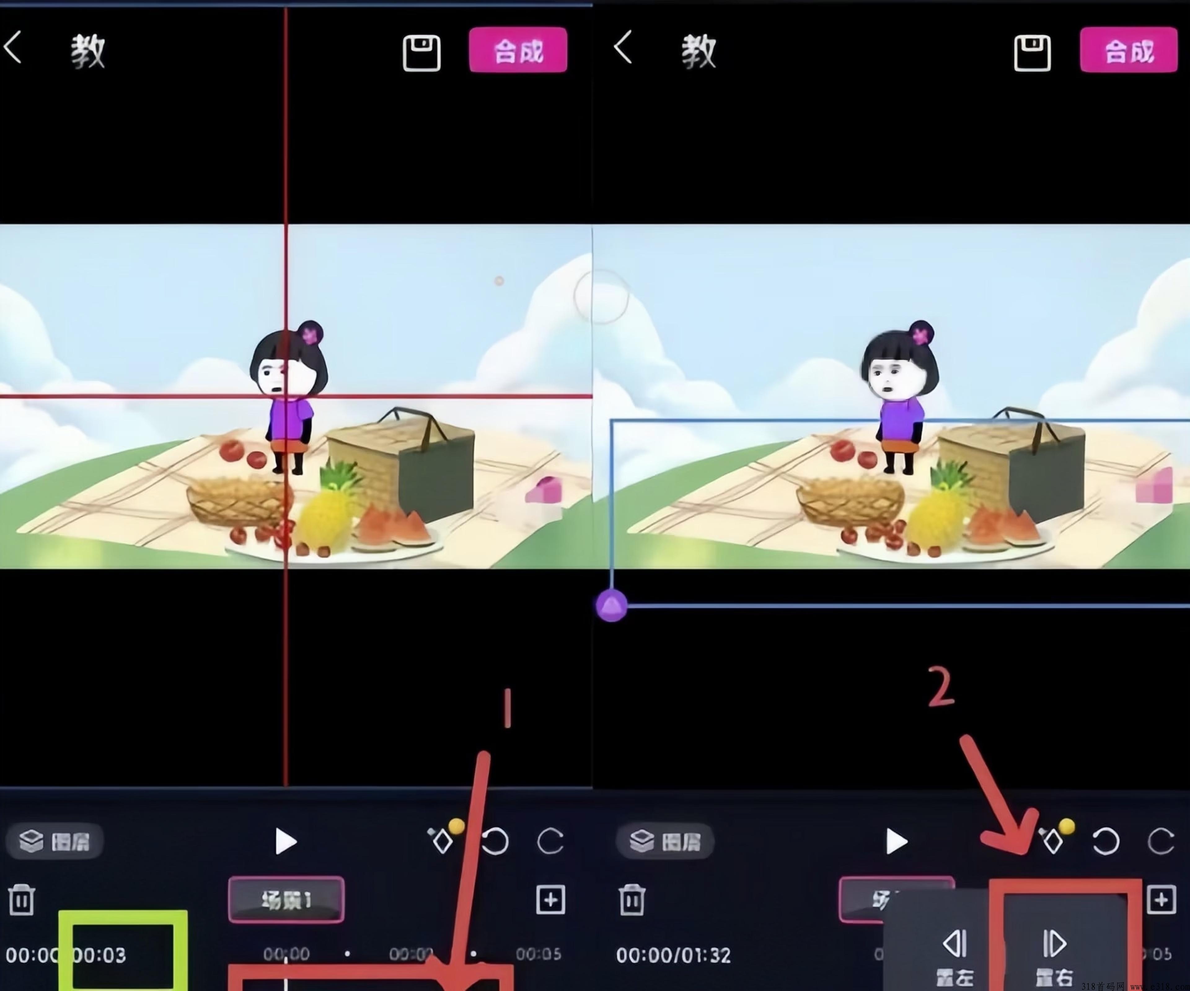 一些小物品可以直接点击制作条添加,选择置右,点击选中的小女孩,可以缩小放大小女孩的比例,自己慢慢看,合适了就行了!