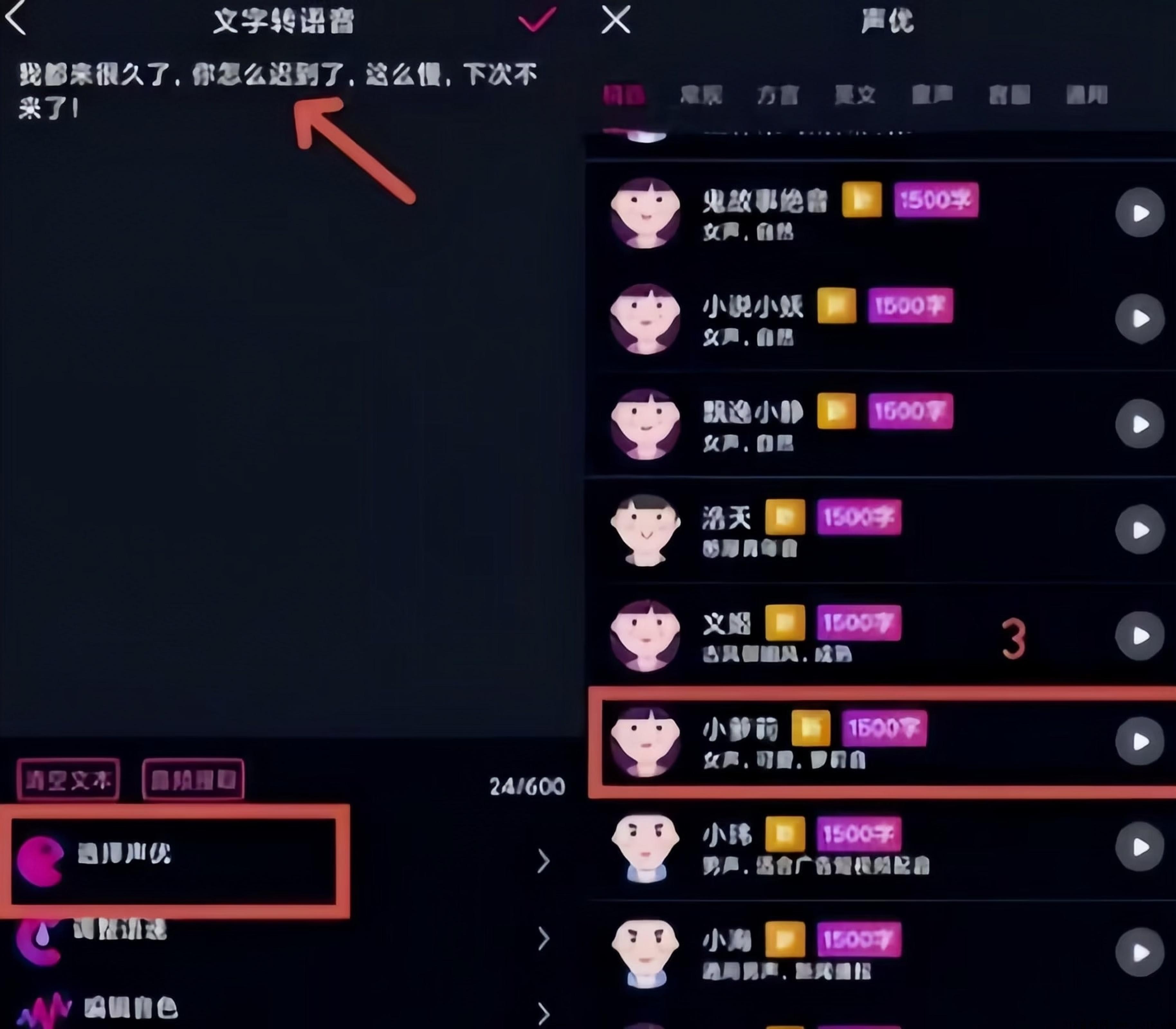 点击声效,然后选择语音合成,再复制你需要制作的段子,粘贴到上面,点击选择配音!