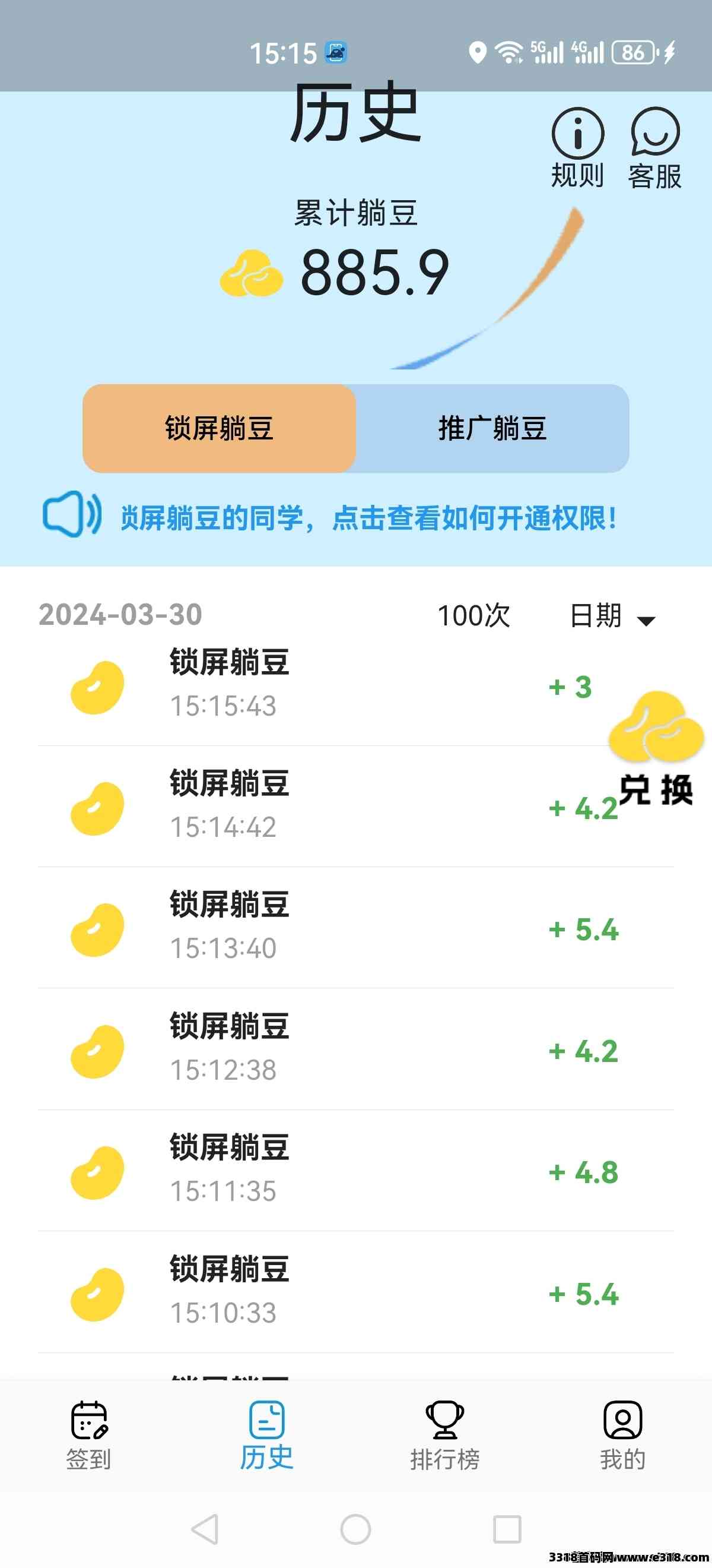 ②每次锁屏打开,会有1个锁屏广告,直接叉掉就行,一般每次2-6个躺豆,偶尔也能超过8个躺豆。一天可锁屏100次。