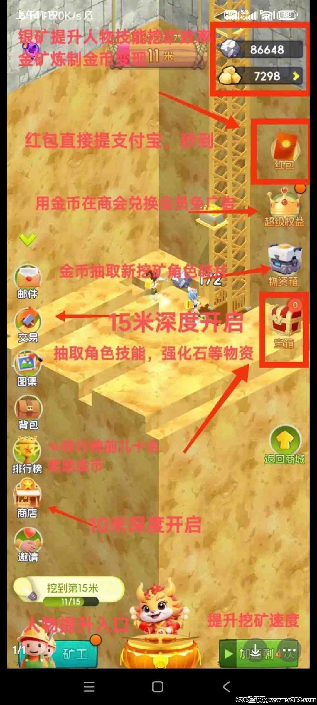 1000矿石冶炼出一个金币,金币用于兑换现金或者赠送,平台保底0.003一个回收。
