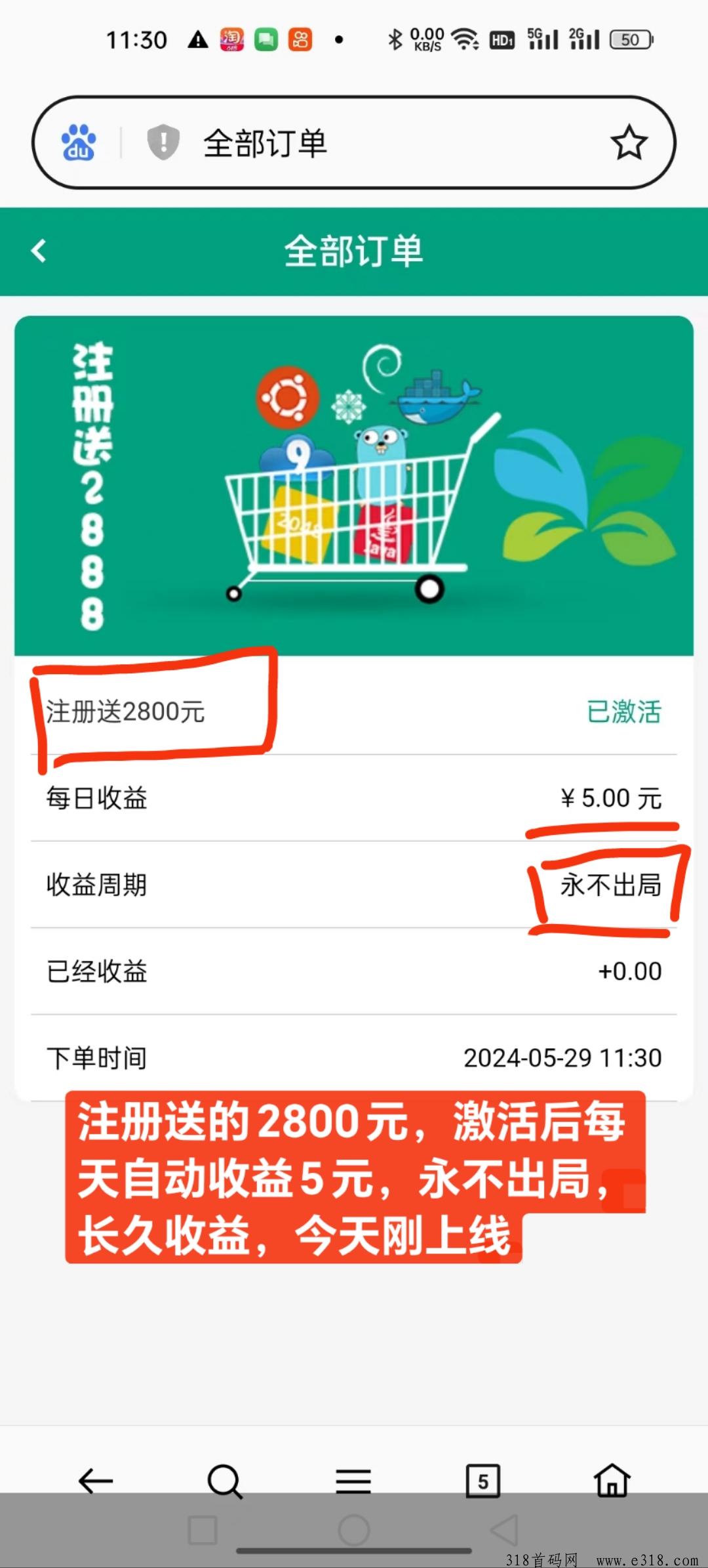 新项目农贸商场刚上线送2800,全新模式每天0点收益5元,永久收益,不出局不结束
