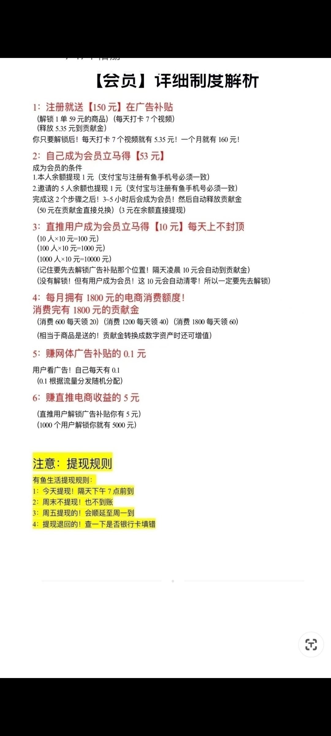 1:注册就送【150元】在广告补贴(解锁1单19元的商品) (每天打卡7个视频)(释放 5.35 元到贡献金)记得看广告一定要花十九元买个商品这样才能一天得五元,你号多了可以多赚,十个号一天五十。