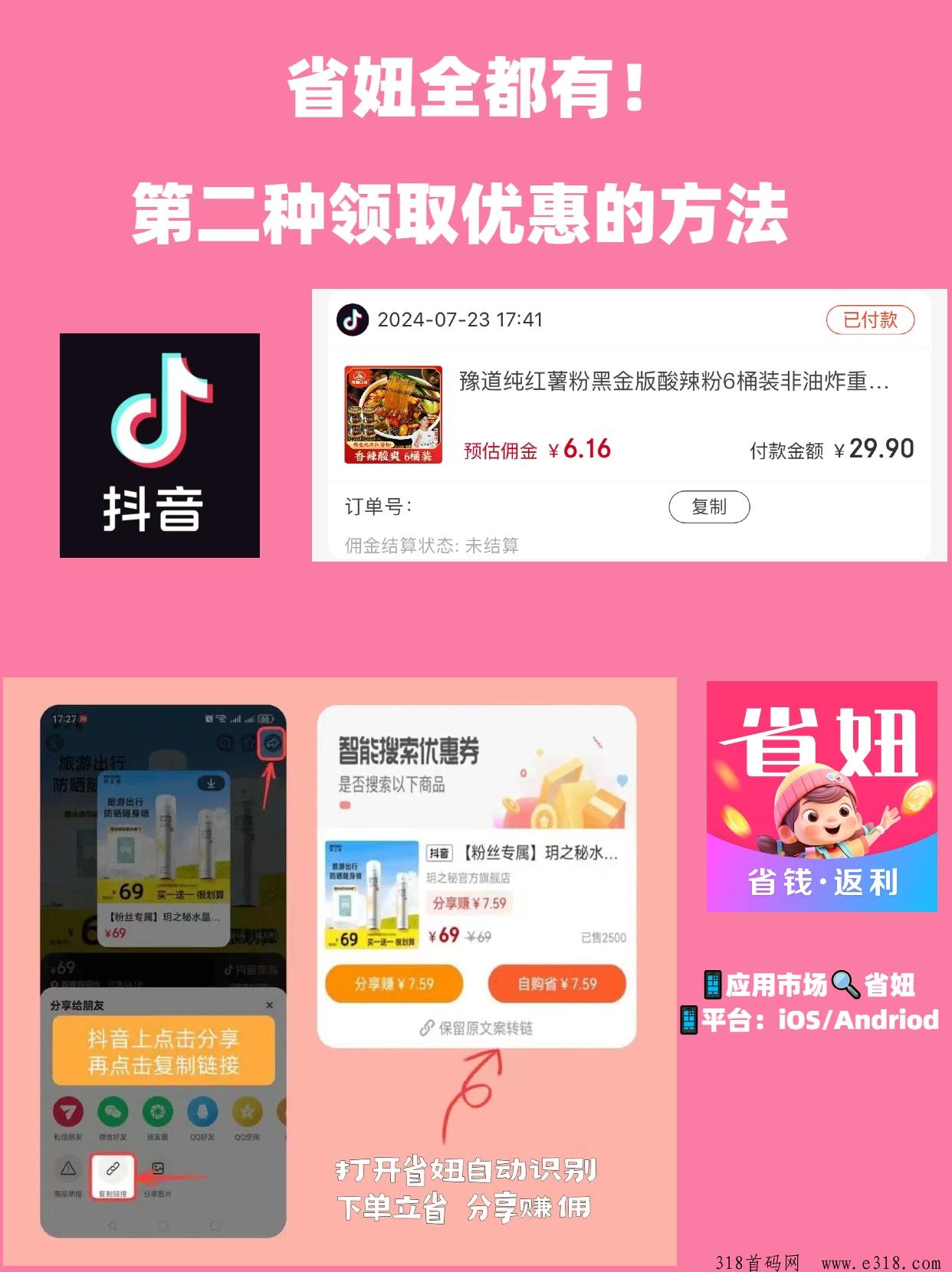 在数字化消费浪潮中,抖音以其独特的短视频模式,不仅成为了娱乐的新宠,也逐渐演变为了购物的新阵地。随着抖音电商的崛起,如何在享受购物乐趣的同时,还能获取更高的返利佣金,成为了众多消费者关注的焦点。那么,最新抖音返利软件哪个佣金高?最新抖音购物怎么拿返利呢? 今天,我们就来一一解答这些问题,并重点推荐一款佣金高、操作简便的抖音返利软件——省妞APP。