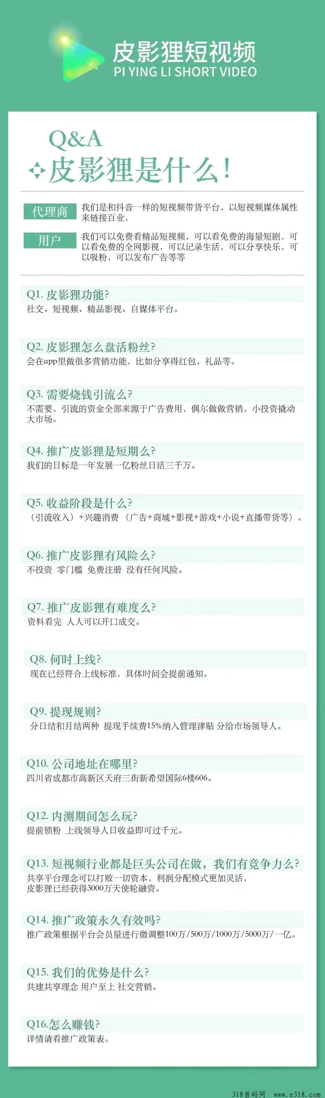 | 免责声明:合作之前建议签订合同,318首码网作为信息共享平台无法对信息的真实性及准确性做出判断,不承担任何财产损失和法律责任,若您不同意该提示,请关闭网页且不要在本站拓展任何合作,否则造成的任何损失由您个人承担。 | |