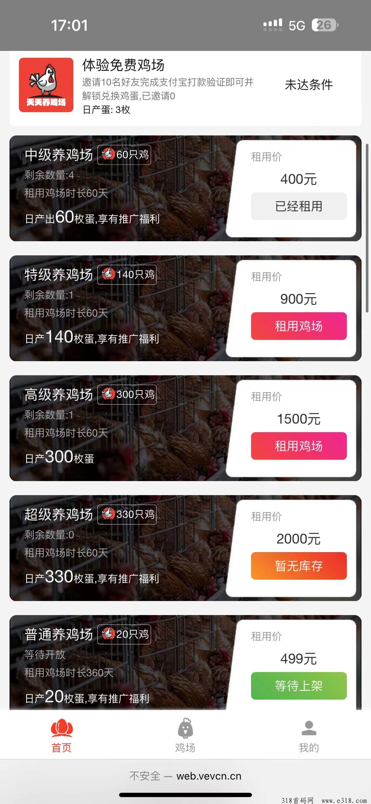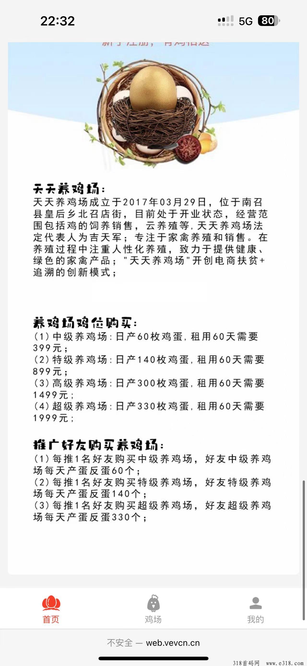 天天养鸡场,家人们,我最近发现了一款刚上线的首码项目-天天养鸡场,界面简单,不用你去频繁的看广告,挂机,每天只用点击一下即可获得收益。