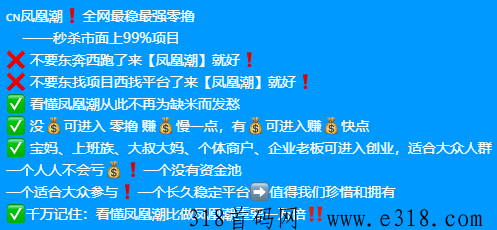 立即加入【凤凰潮】,开启你的零撸赚钱之旅! 在这里,你不仅可以享受零撸的乐趣,还能通过分享和推广,轻松赚取收益。凤凰潮,让你的财富增长不再有界限!