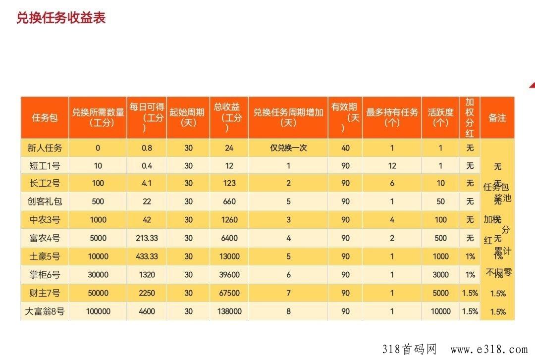 3.不推广只**,用钱去赚钱: 通过**,用资金赚取工分,适合有资金但不想参与推广的用户。