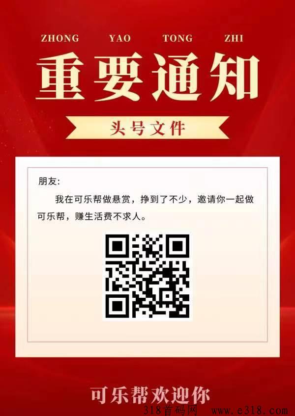 可乐帮:0投入任务悬赏赚钱,操作简单,每天轻松赚收益30-50+!