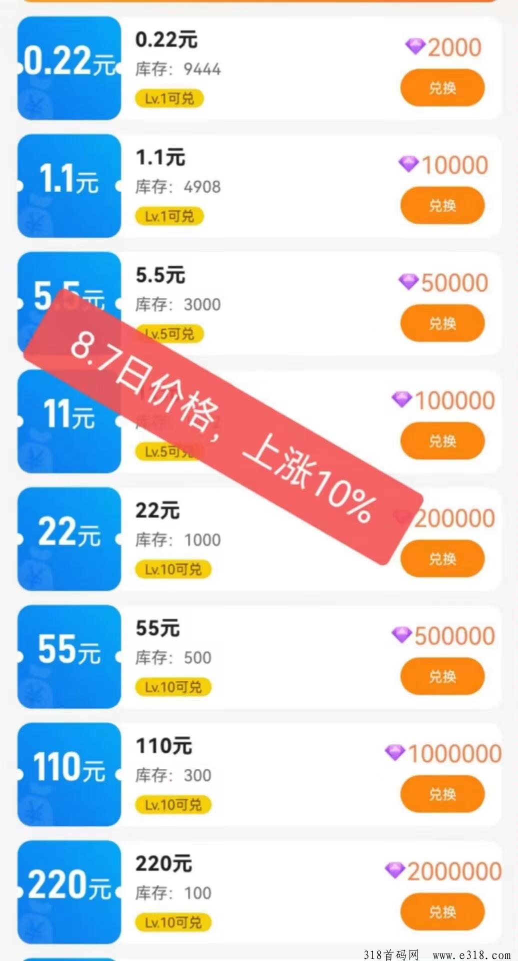 2.根据用户量上涨达50万会进行第二次减产:价格会直接上涨到0.001/个