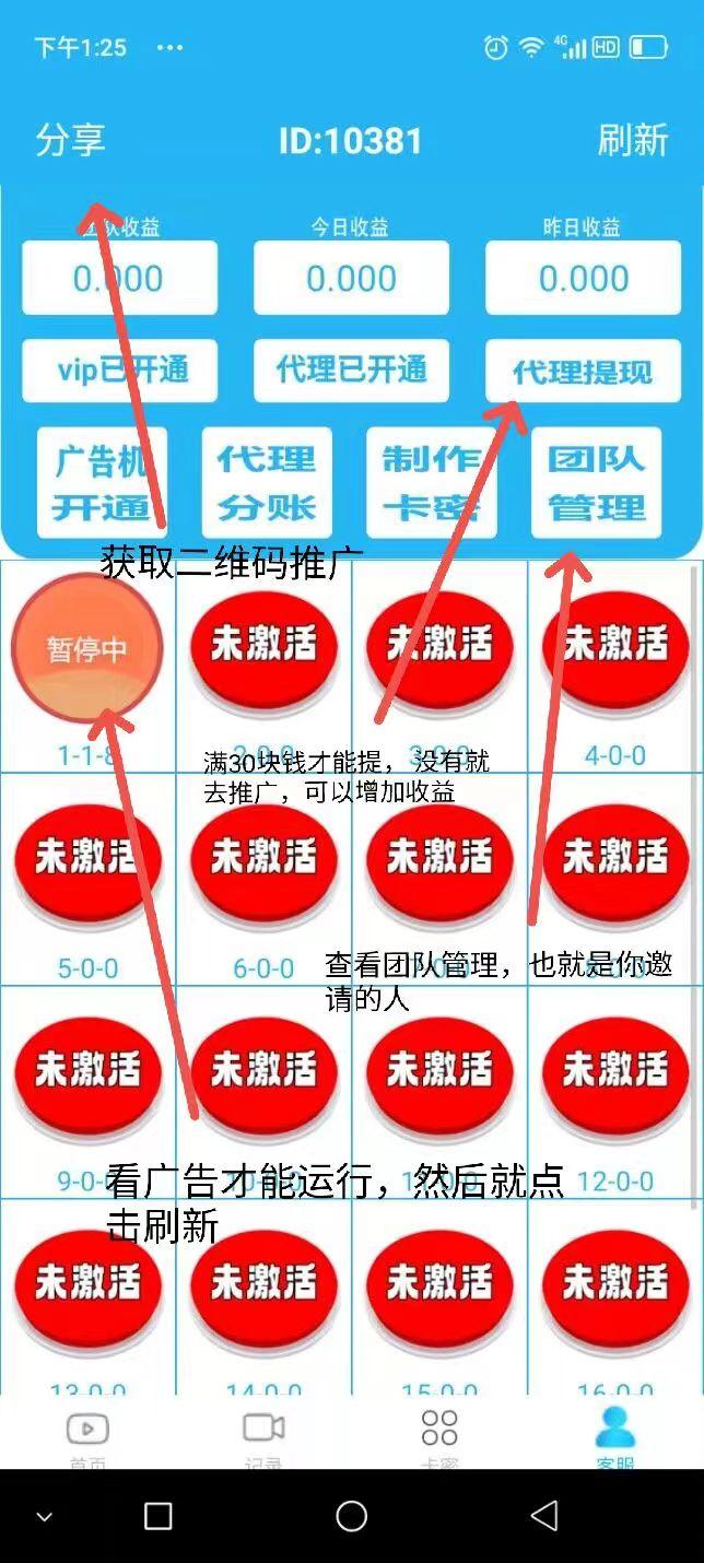 逍遥广告,自动褂机,注册就送代理和1台永久广告机,每天产50积分可兑换0.5米.每邀请激活①广告机用户,送1台永久广告机,多邀多送代理自己可制卡密激活大量广告机,推广享受团队广告机收益12代提成登录后点第一个广告机,看一个广告后刷新一下,以后永久运行,积分可提现,可转赠,可制卡密,可开vip1千积分兑10元,20起提致富宝基本秒到,直接平台
