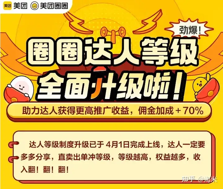 美团是中国本地生活服务平台,每天的日活已经达到7千万!大众有吃喝玩乐住行的需求一般都会先打开美团了解。美团圈圈的优势就是在美团团购的基础上,二次优惠,并加入了分销机制,即用户购买的美团团购套餐价格更低,套餐核销后,达人的后台自动产生一笔佣金,数额从几毛到几十元不等。