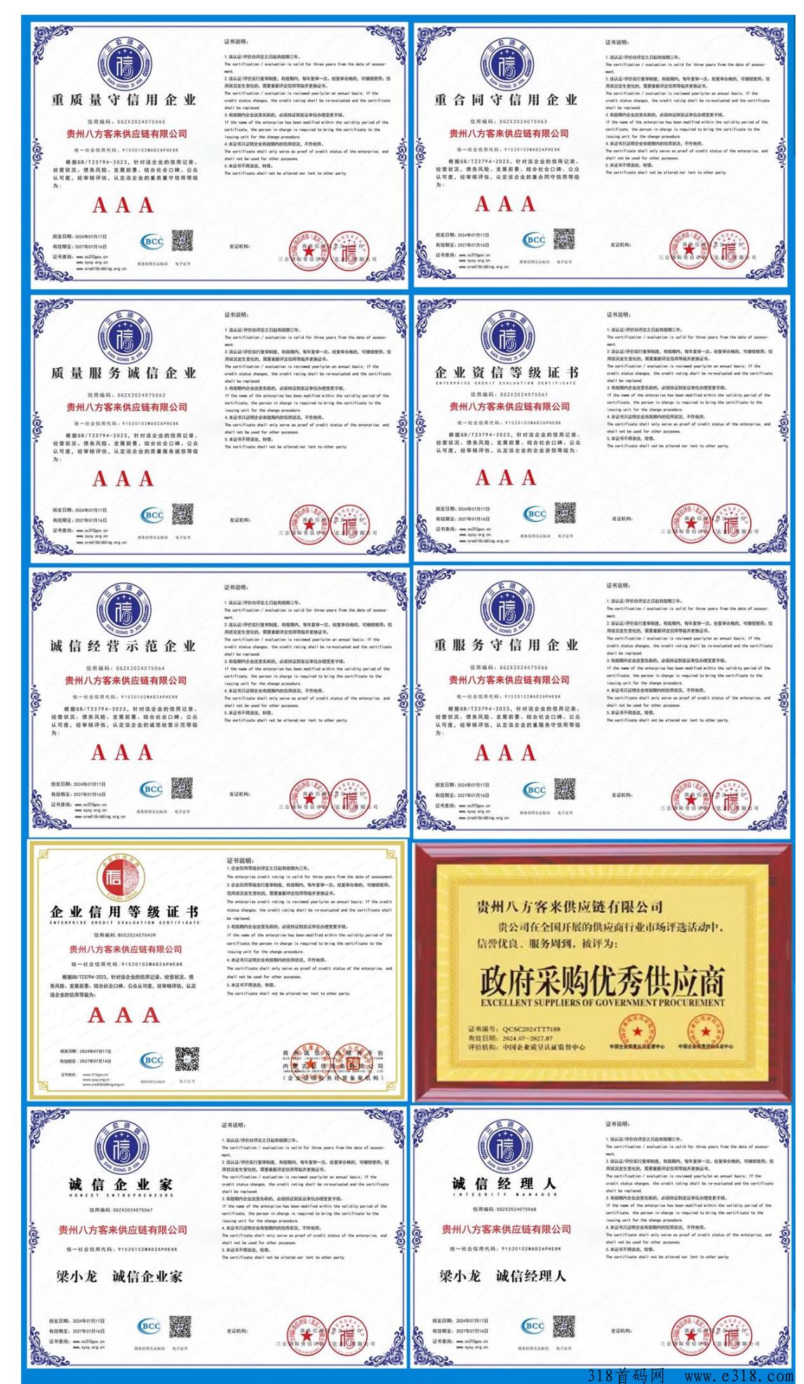 贵州八方客来供应链有限公司,落地于中国大数据之都贵州省贵阳市地标高楼双子塔脚下,注册资本1827万,实力强悍,证书与荣誉应有尽有。
