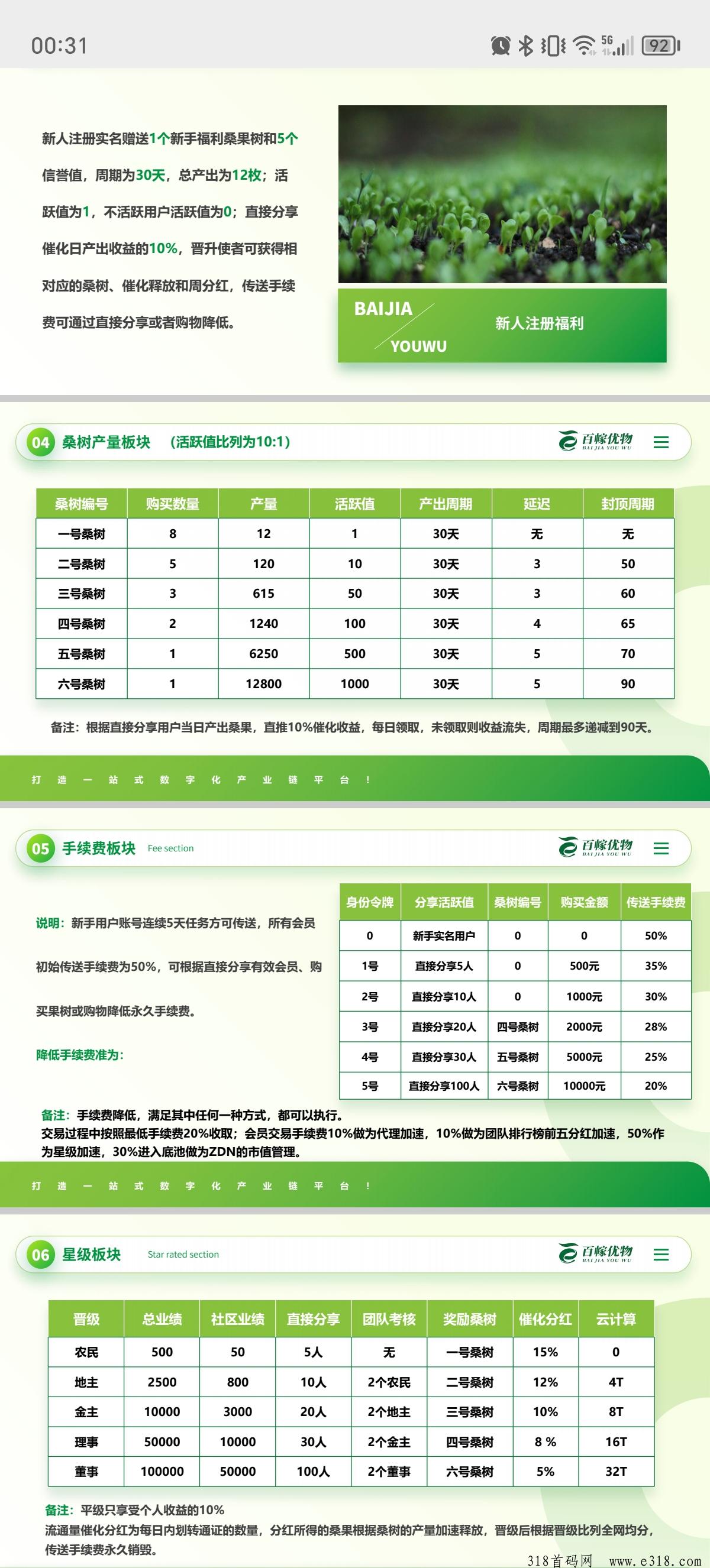商城购物可获得1:1信誉值;会员购买桑果可获得1:2的比例;其中1.2%的桑果在24小时后释放,0.8%锁仓每日释放1%,卖出时1:1消耗桑果。