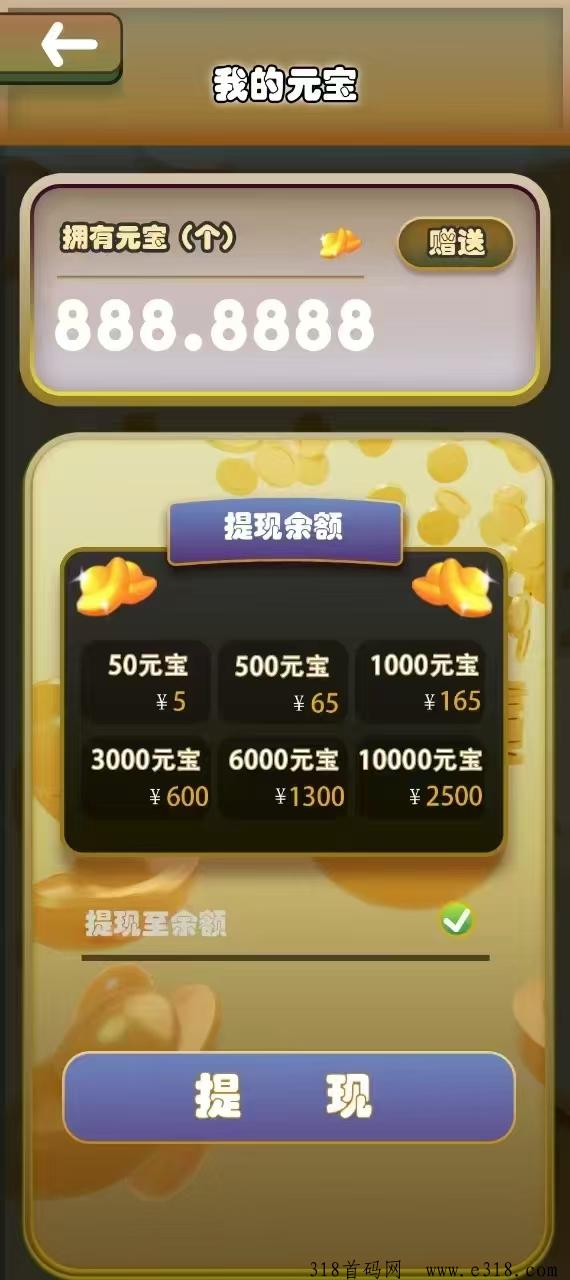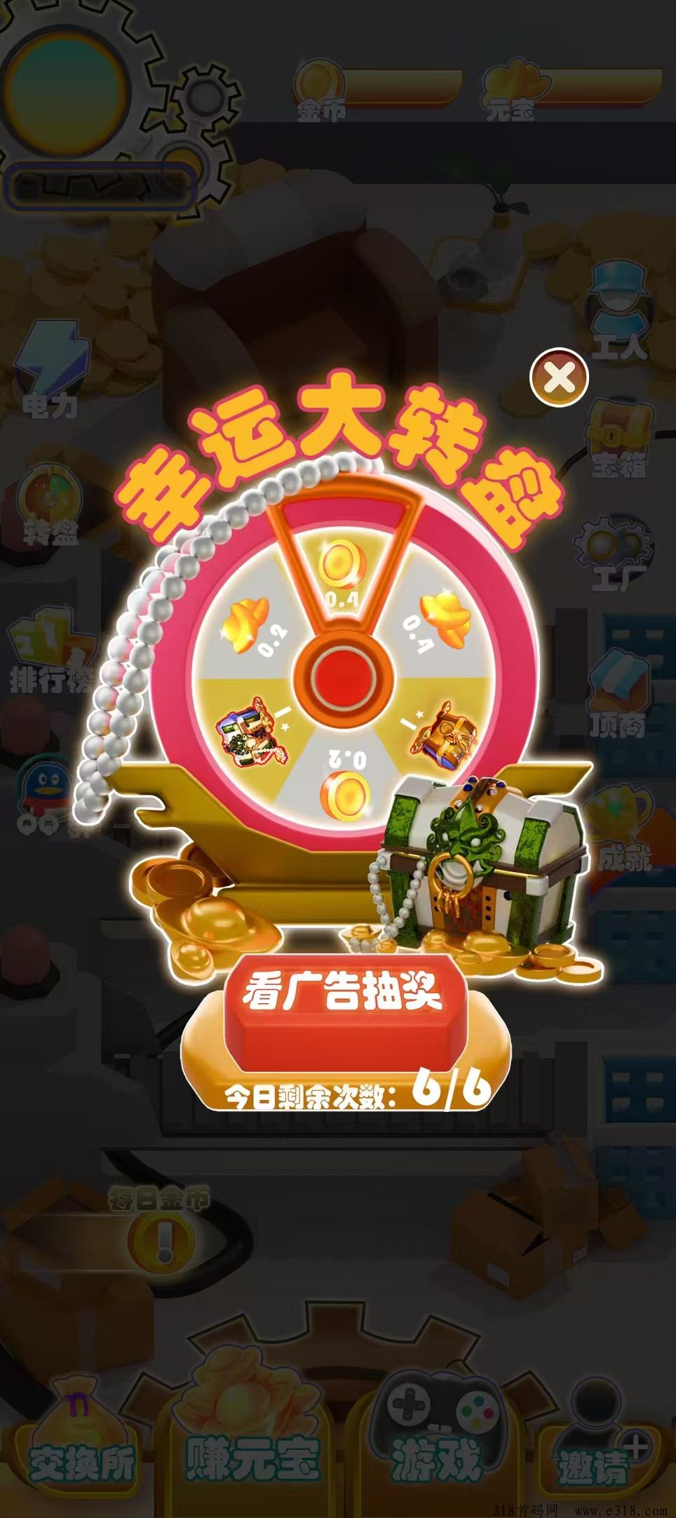 2、游戏重要道具–元宝 :可提现,可赠送,也可以用来购买工厂内的工人与增益地图 。