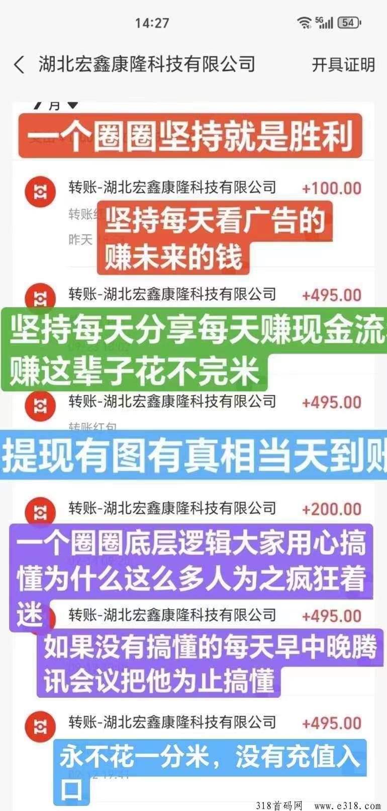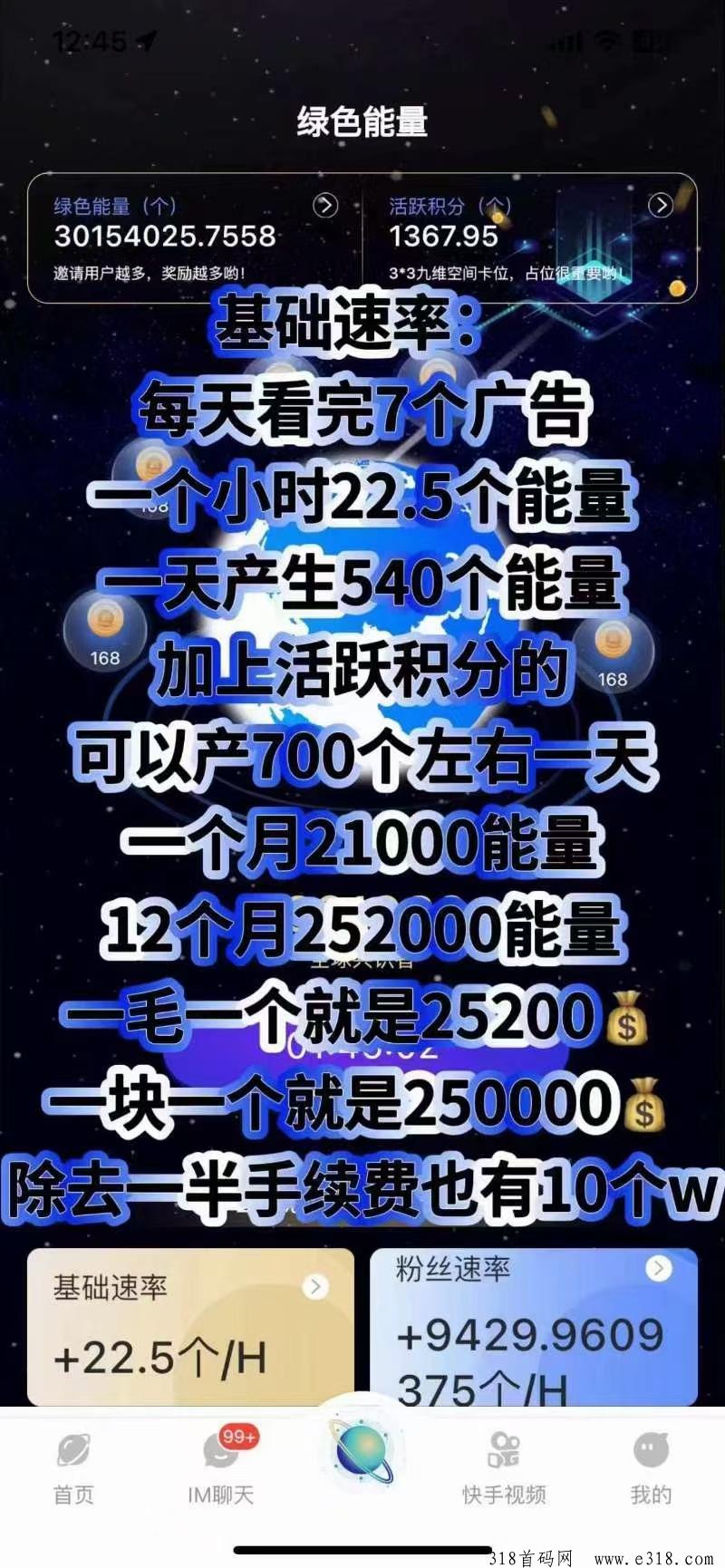 每天6分钟看7个广告获得大约700个数字资产→绿色能量,按分秒计算的,绿色能量可以提现到账支付宝,可以持有升值!机制决定了绿色能量价格每周都在上涨。一个圈圈上线6个月,绿色能量上涨760倍,当初余额上的1元6个月后的今天已经变成了760元。