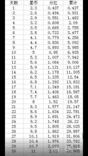3、这是一个月每天签到获得的星币+**可获得的现金收益图: