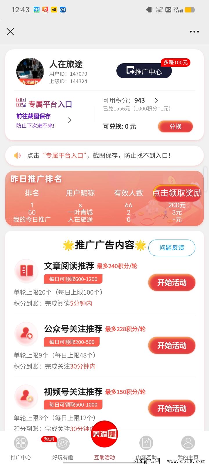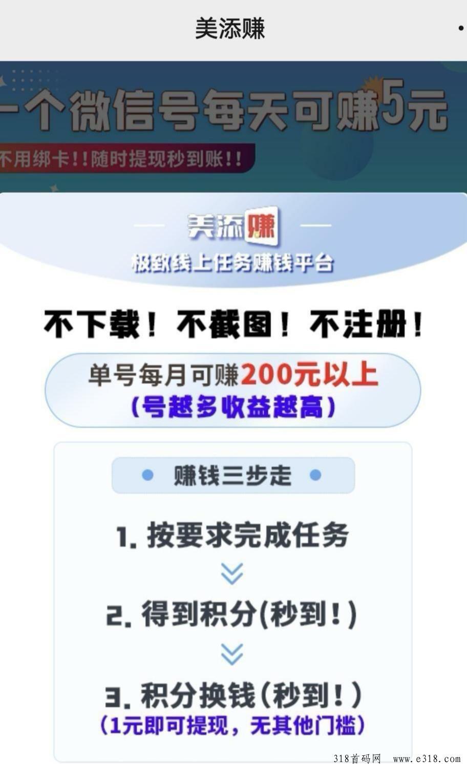 美添赚,首码零撸 阅读/关注