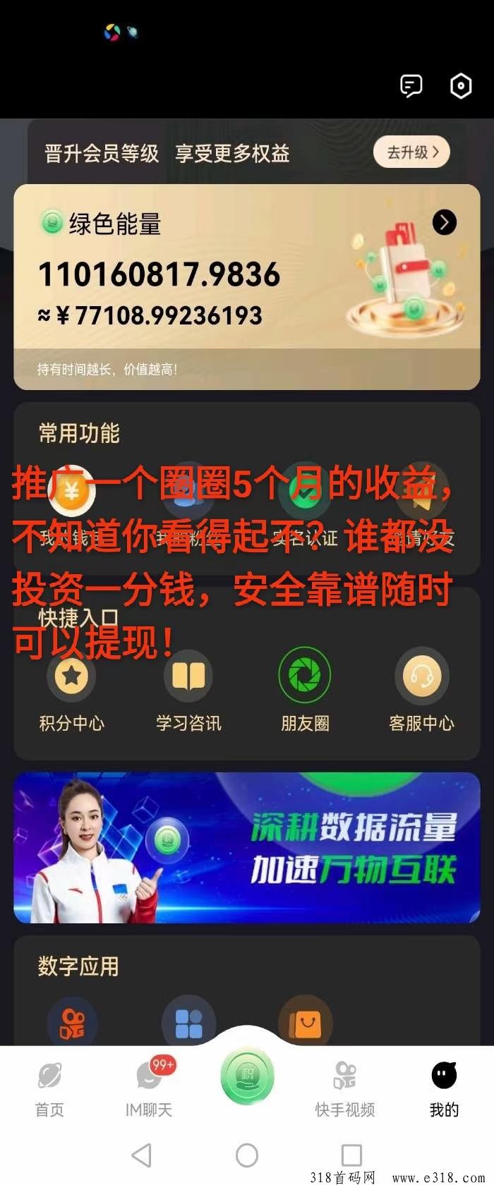 一个圈圈APP上线250天内吸引了211万+用户参与,刷新了行业记录,成为数字经济领域的明星,被圈内誉为零撸天花板。平台有活动和奖励机制,用户可以邀请其他人参与,提升会员等级,降低手续费,提高收益。平台收益玩法包括看广告获取绿色能量、签到启动获取活跃积分和会员推广收益。人人负债而行。你身边有那种不欠一分钱的人吗?