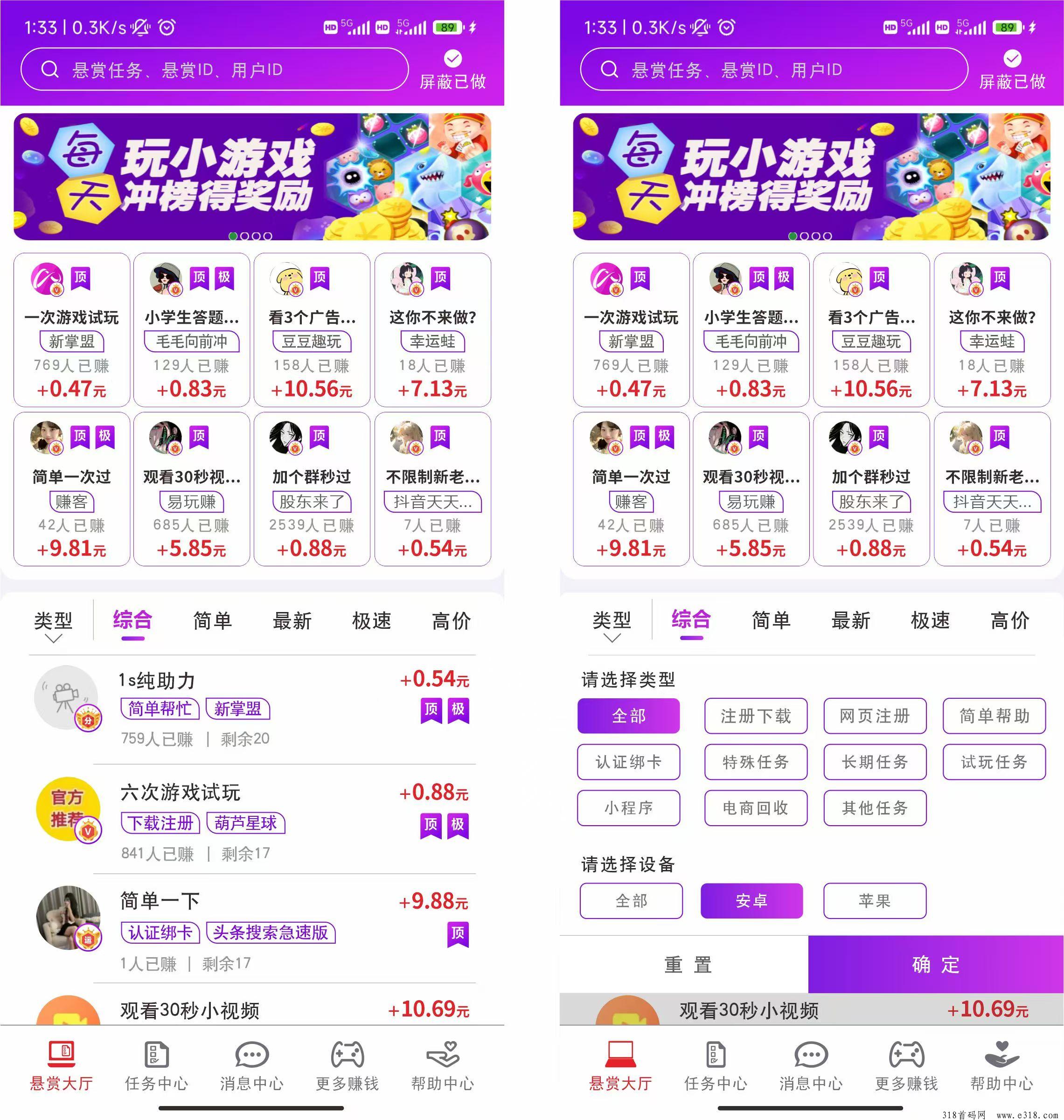 悬赏任务与游戏:用户可以通过完成任务或玩游戏来获取奖励,轻松赚取收入。