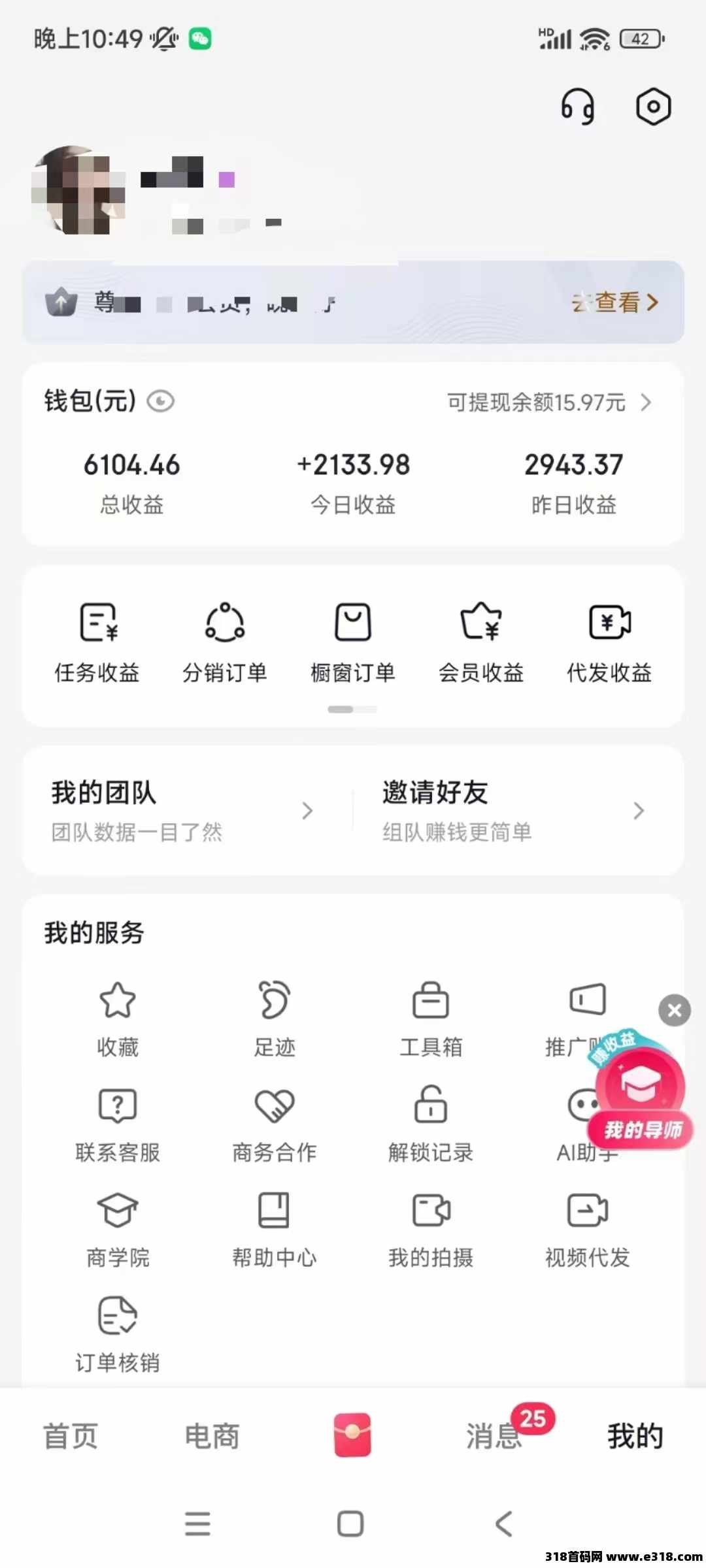 推广团队?限玳收益,
