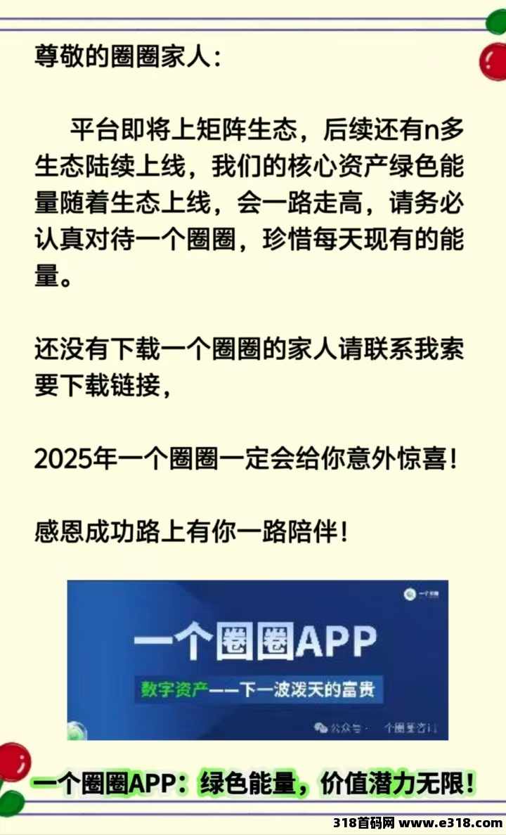 一个圈圈生态2.0已上线(各生态將逐渐上线)