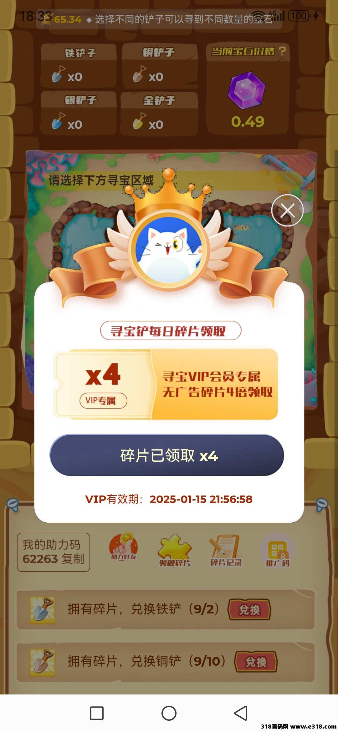 系统赠送的碎片进行挖宝获得宝石,如果挖到宝石不消耗铲子可以继续挖,无限白嫖,挖到一个宝石等于0.5元,这些都是可以提现到微信的,秒到。