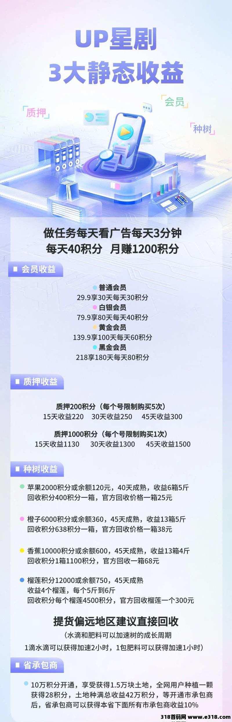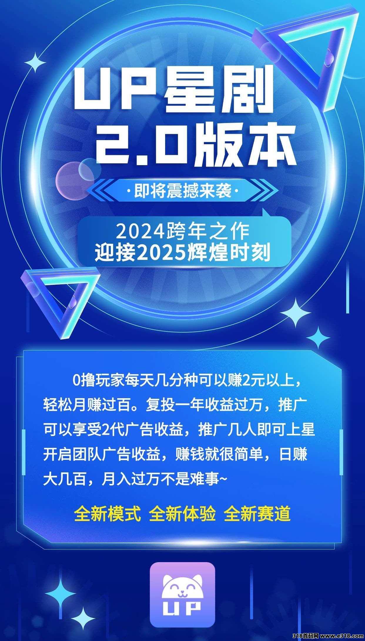 025年全网最稳定项目已上线,UP星剧是一款,大型多样玩法项目,短剧➕广告➕商城➕种树➕理财➕游戏➕**综合项目。1.0版本内测稳定运营70天以上,2.0版块首码已上线。种树玩法多样,可以互相摘取别人水果,水果可以提现可以提货可以变成积分交易。0撸每天3分钟月赚上百,小投资出局快。推广0撸也赚钱,推广投资玩家收益天花板。