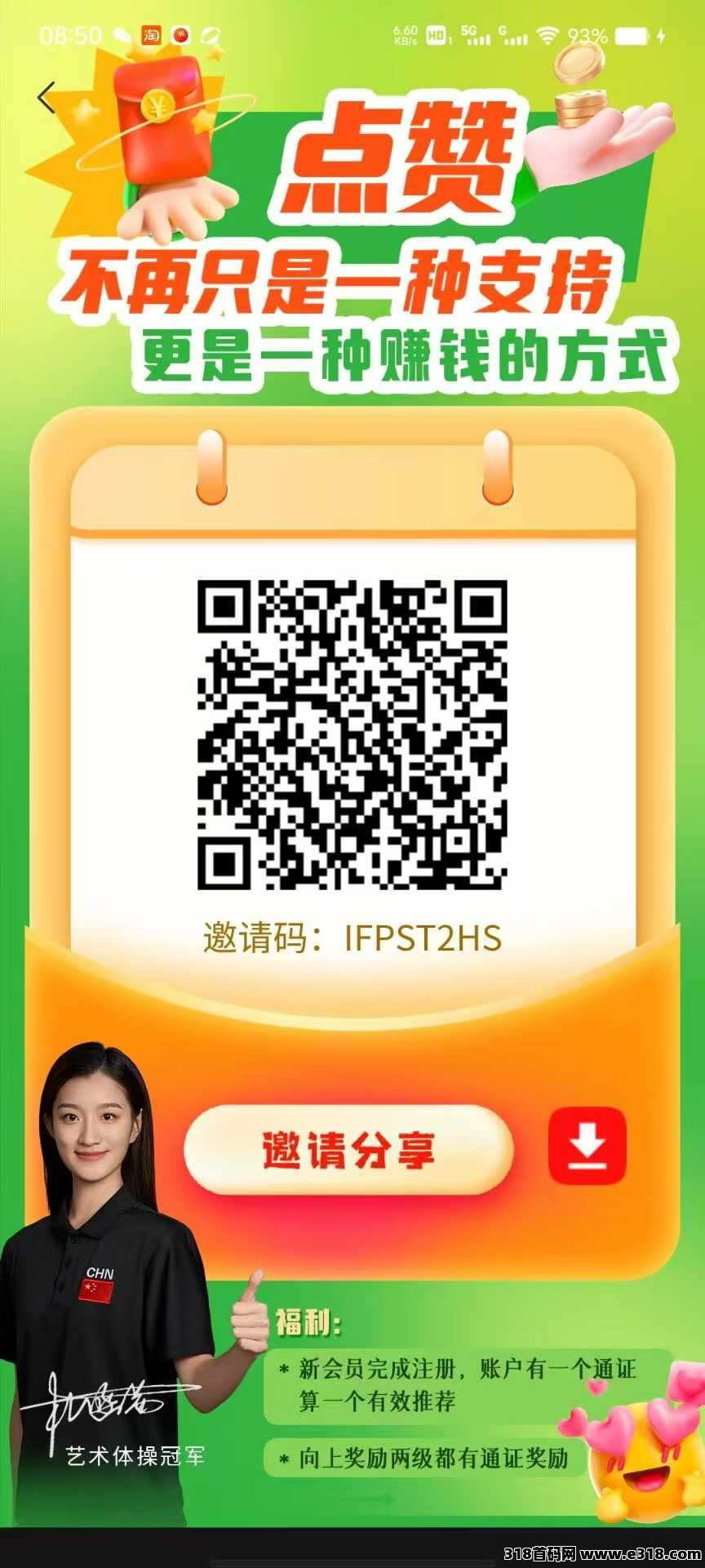 超赞,0撸点赞关注赚钱,艺术冠军代言!