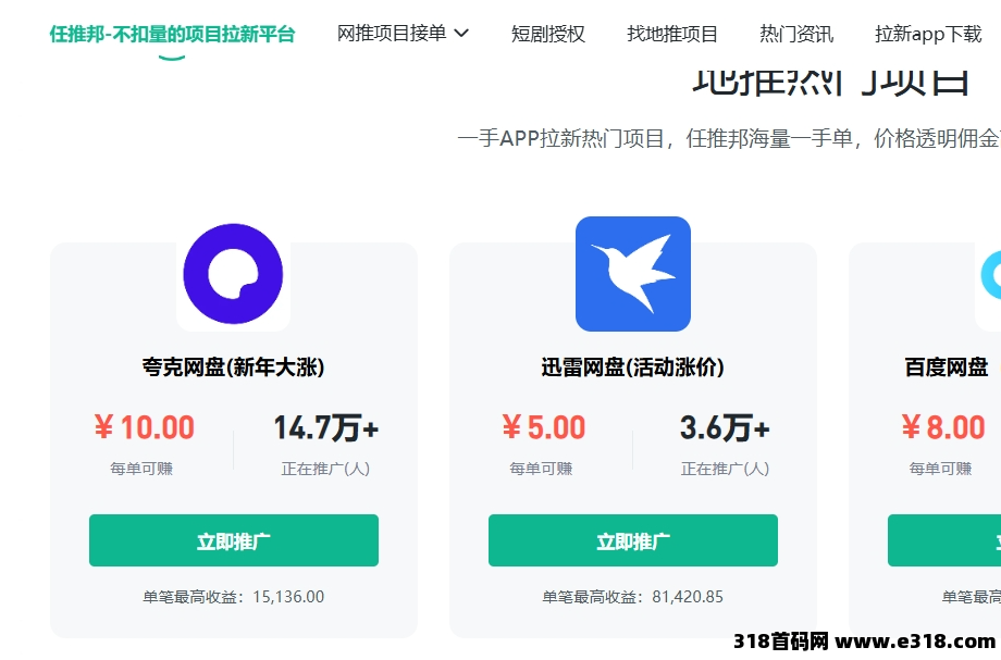 夸克网盘拉新平台:任推邦(邀请码:100001)